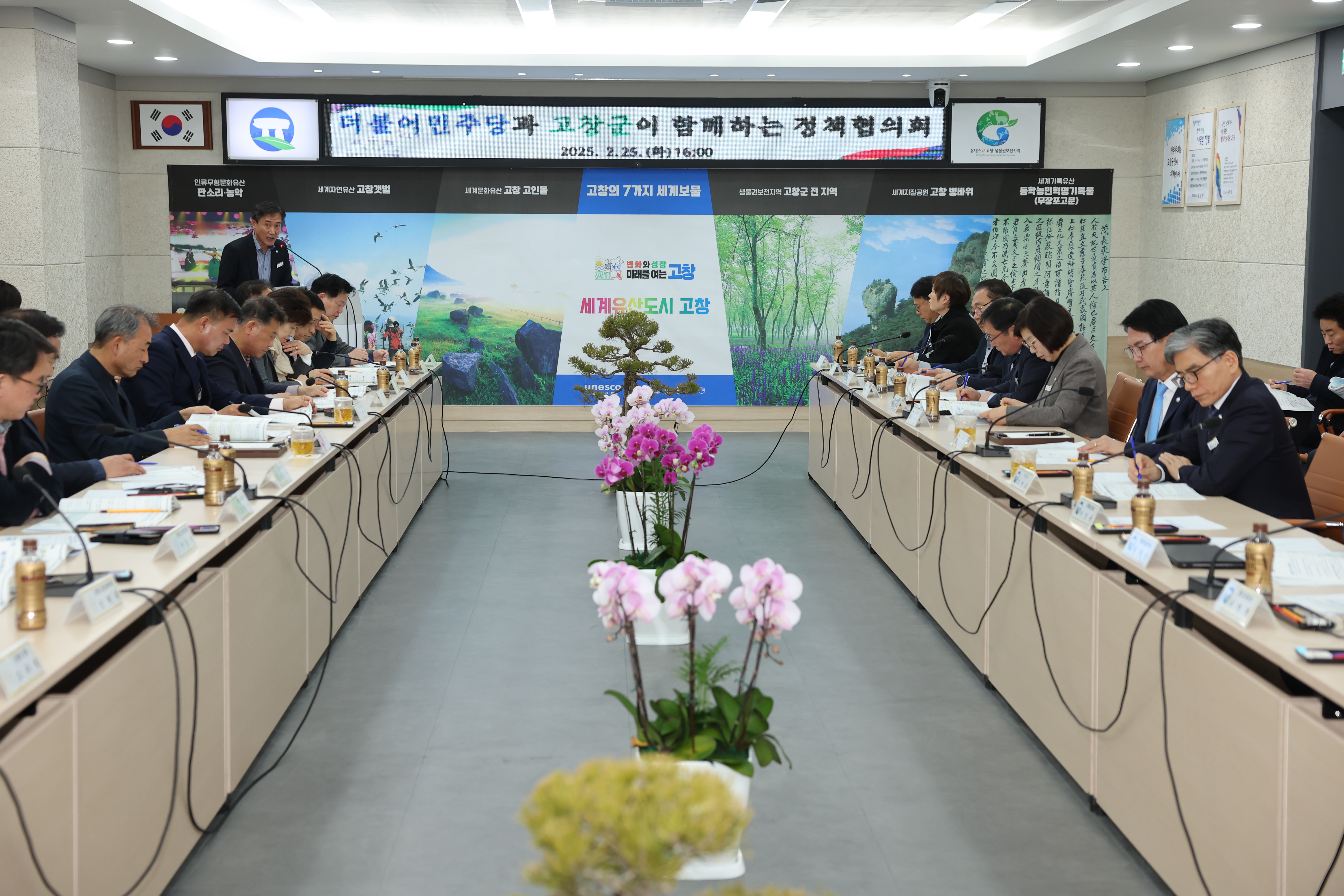 [고창=뉴전북] 전북 고창군과 더불어민주당 지역위원회가 2025년 첫 정책협의회를 갖고 현안 해결과 국가예산 확보에 적극 협력하기로 했다.