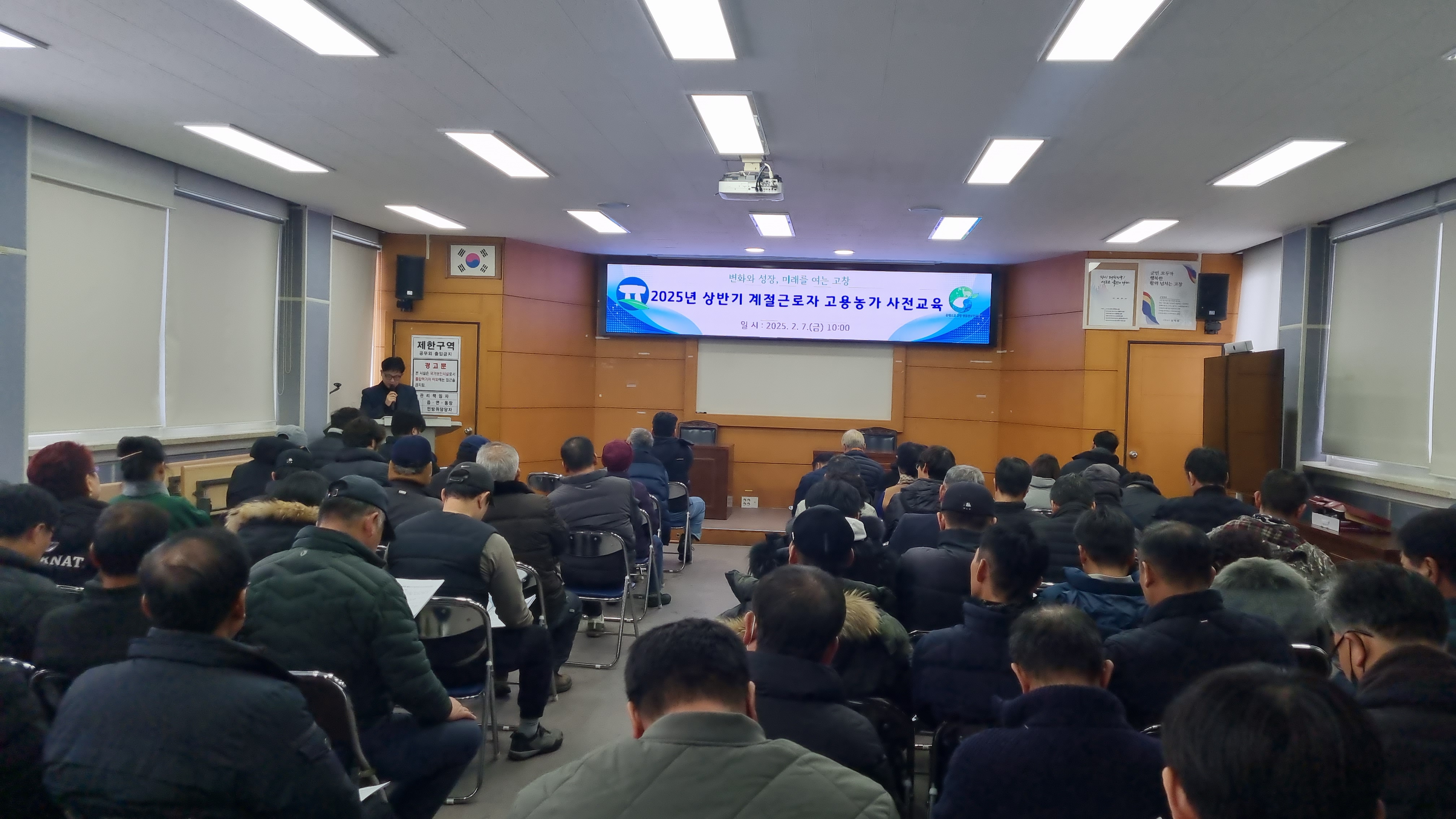 [고창=뉴전북] 고창군이 26일 오전 고창군장애인복지관에서 장애인일자리사업 참여자 76명을 대상으로 ‘장애인 일자리사업 기본교육’을 실시했다.