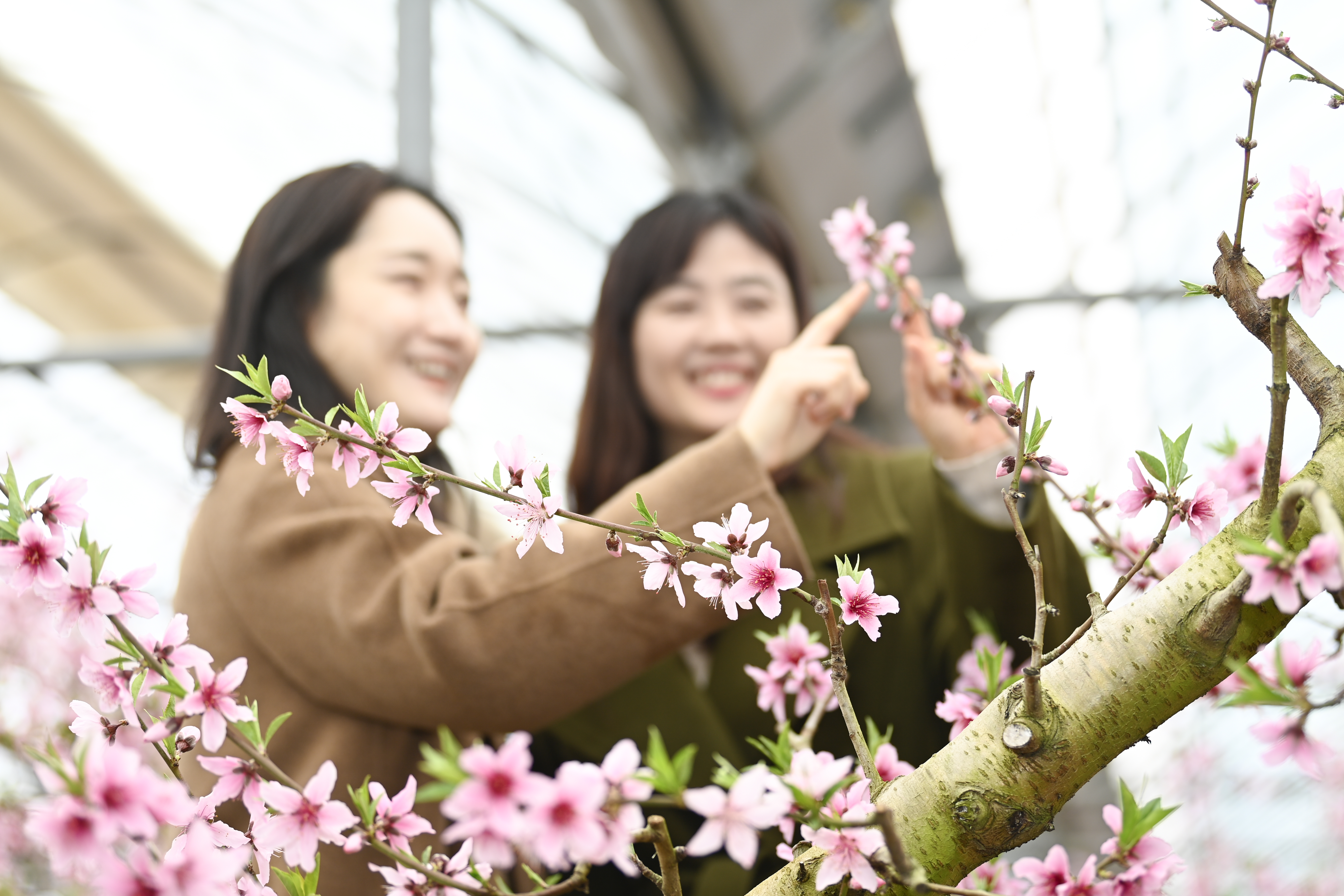 [남원=뉴전북] 전북 남원시의 시설하우스에서는 매서운 겨울 한파를 이겨낸 복숭아 나무가 붉은 꽃망울을 터뜨리며 봄의 시작을 알리고 있다.