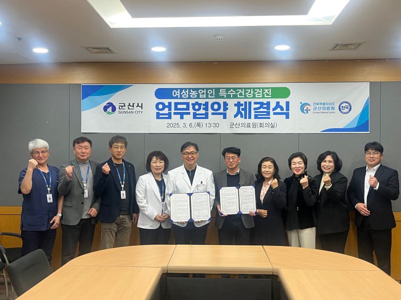 [군산=뉴전북] 군산시농업기술센터와 군산의료원이 ‘2025년 여성농업인 특수건강검진 지원사업에 따른 업무협약’을 지난 6일 체결했다고 밝혔다.