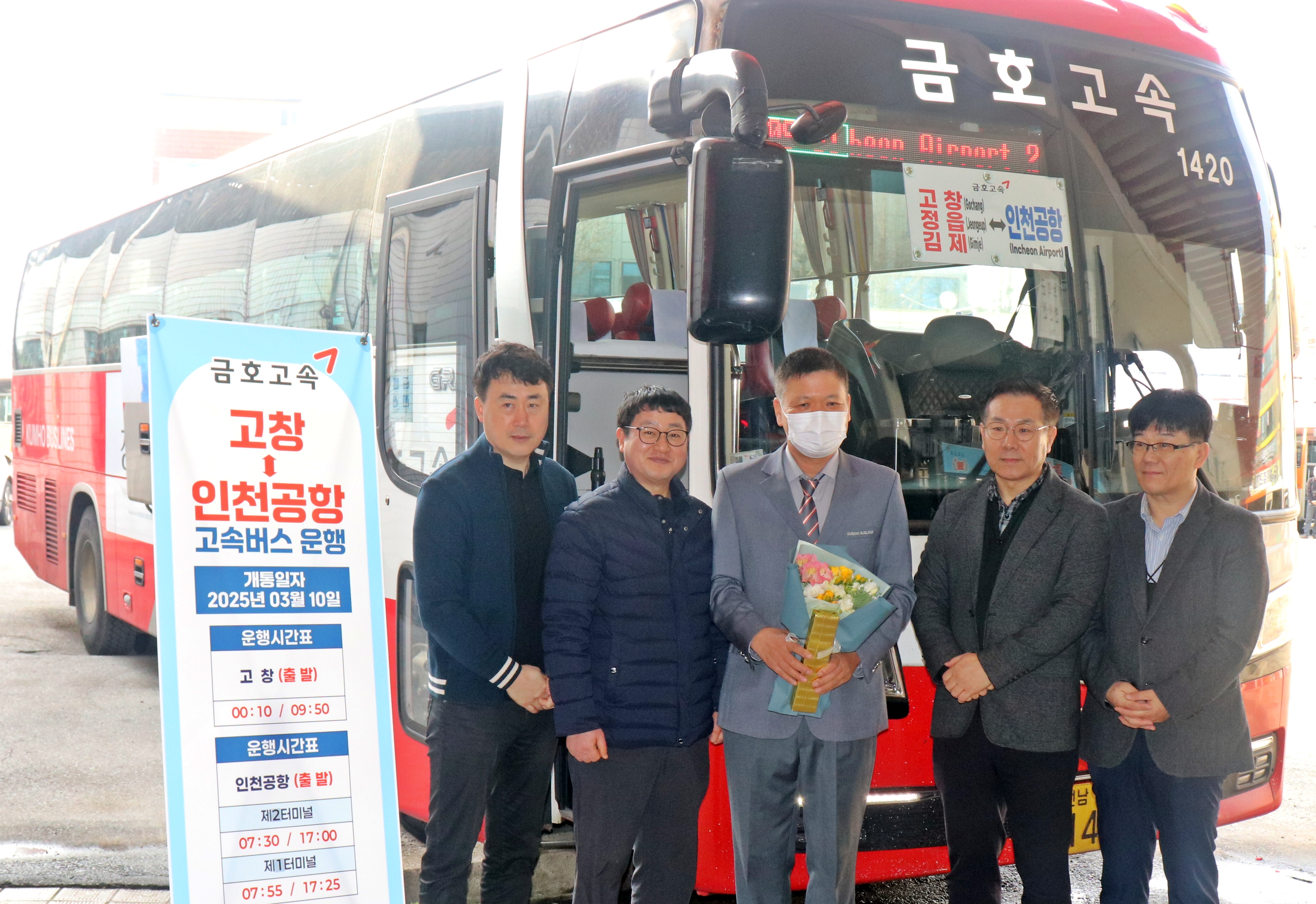 심덕섭 고창군수는 “지역의 숙원이었던 인천국제공항간 고속버스 운행으로 군민들의 이동 편의가 대폭 향상됐다”며 “앞으로도 고창군민들이 보다 나은 삶을 향유할 수 있는 대중교통 정책을 펼쳐나가겠다”고 강조했다.