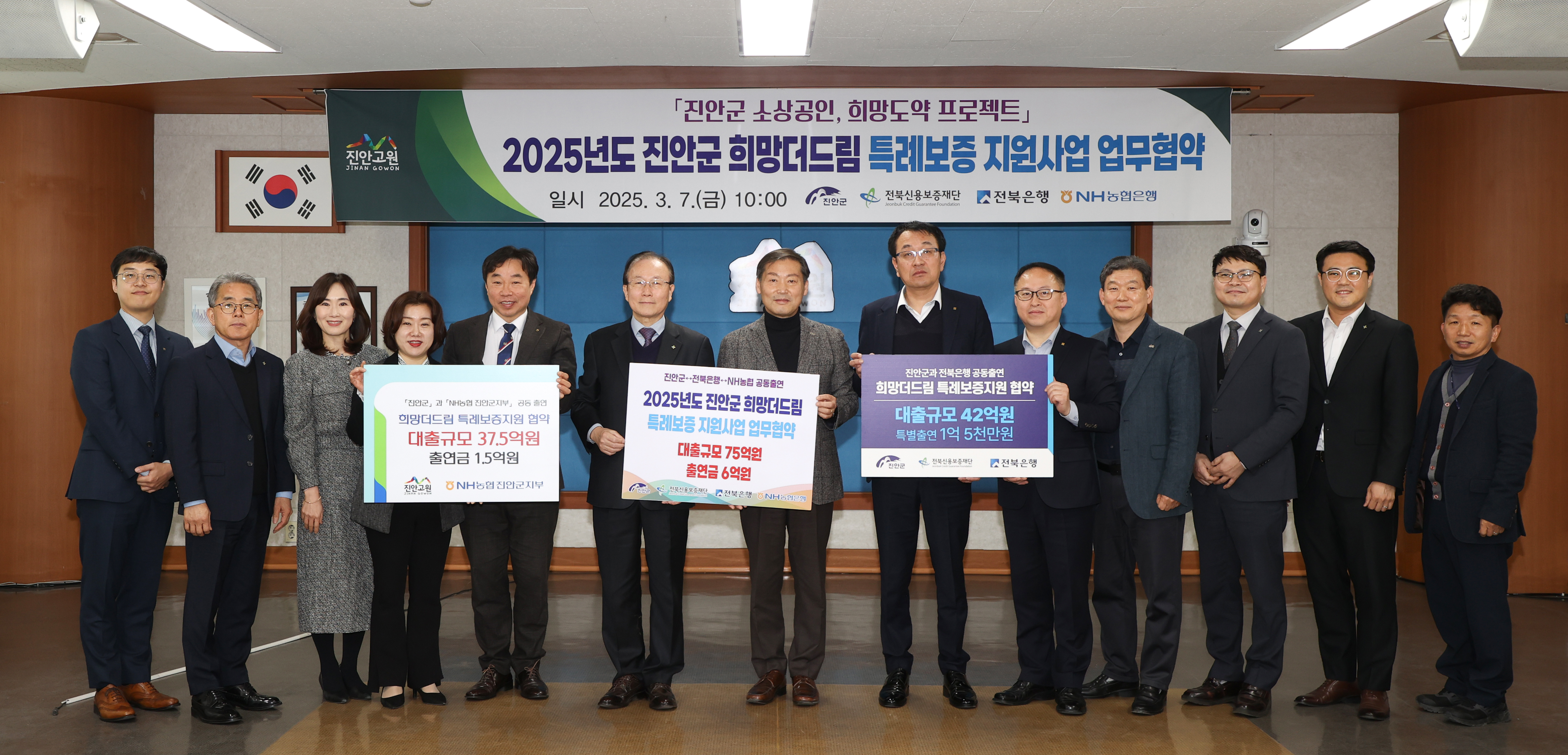 [진안=뉴전북]진안군은 지난 7일 군청 상황실에서 소상공인 자금지원을 위한 “2025년 희망더드림 특례보증 지원사업 업무협약식”을 개최했다.