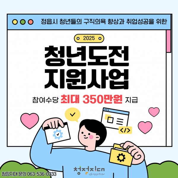 현재 1기 참여자를 오는 31일까지 모집 중이며 자세한 사항은 정읍시 청년지원센터(☎063-536-0333)로 문의하면 된다.