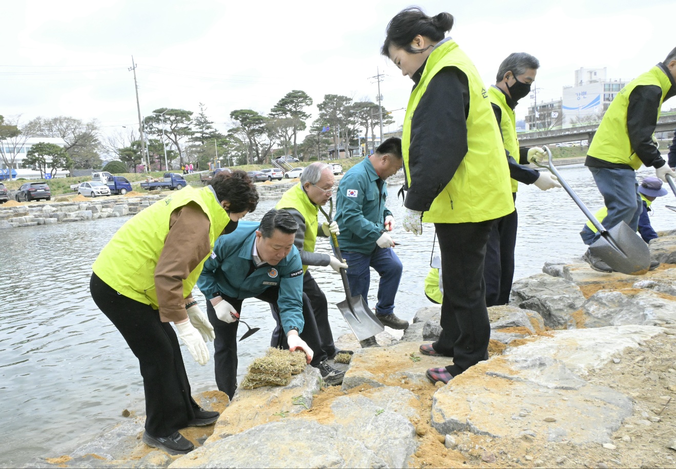 이날 행사에는 군청, 군의회, 산림조합, 지역 사회단체가 적극 참여하였으며, 경천변에 모인 참가자들은 총 1,722㎡의 잔디를 정성껏 심고 하천변 환경 정화 활동을 펼쳤다.