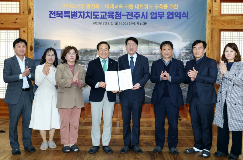 [교육=뉴전북] 전주시와 전북특별자치도교육청은 31일 전라감영 선화당에서 ‘마이스산업 활성화 및 미래교육 지원 네트워크 구축을 위한 업무협약(MOU)’을 체결했다.