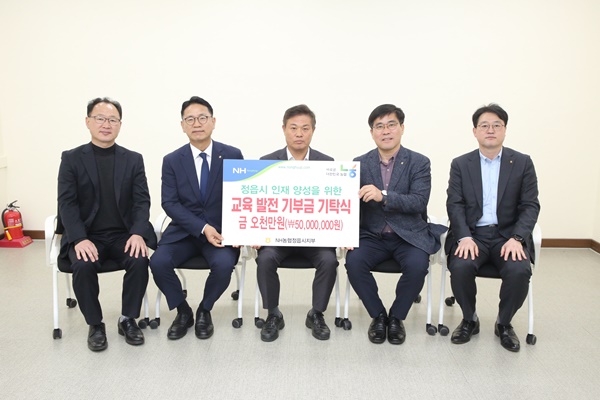 김순기 지부장은 “정읍의 교육 발전에 도움이 되기를 바라는 마음으로 기탁하게 됐다”며 “앞으로도 지역과 함께 성장하는 농협이 되도록 지속적으로 관심을 갖고 노력하겠다”고 전했다.