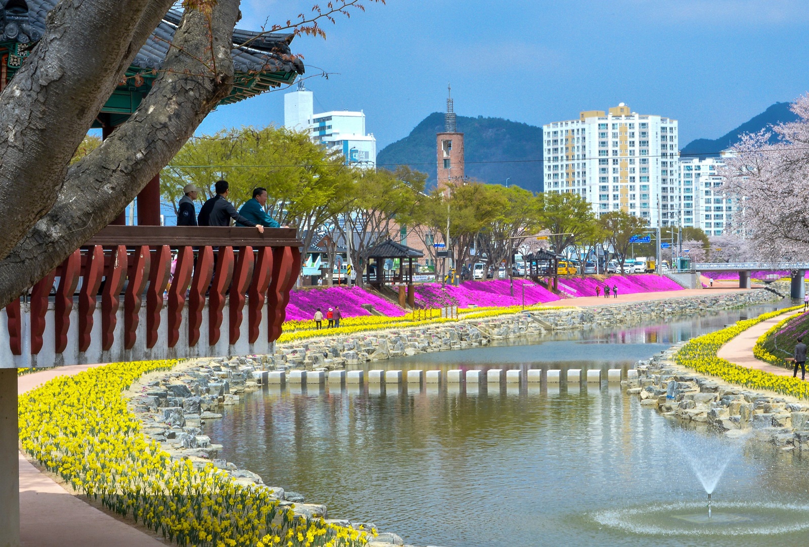 민선 8기 5대 역점사업 중 하나인 ‘경천․양지천 수변 종합개발사업’의 일환으로 조성된 양지천 산책로 약 2km 구간에 꽃잔디와 수선화, 튤립 약 70만 본이 활짝 피어나, 봄나들이객들의 발길을 사로잡고 있다.