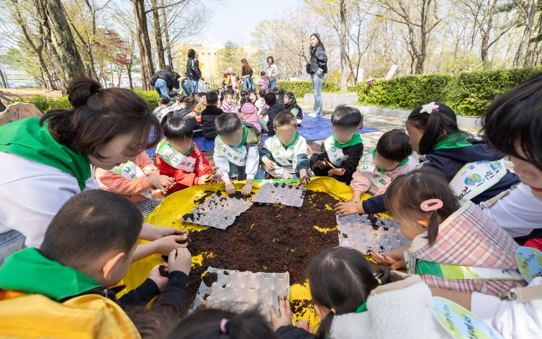 익산시는 식목일을 기념해 15일 익산시 민간어린이집연합회(회장 김지연 굿키즈어린이집 원장)와 중앙체육공원에서 지구 환경 보호 캠페인을 펼쳤다.