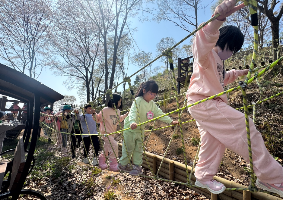 이번에 조성된 체험원에는 학습장과 데크, 야외 테이블, 벤치, 화장실 등 기본 기반시설은 물론, 그물놀이, 블록 쌓기, 터널놀이, 트리하우스, 집라인 등 자연환경을 활용한 다양한 놀이시설이 마련되어 아이들의 높은 만족도가 기대된다.
