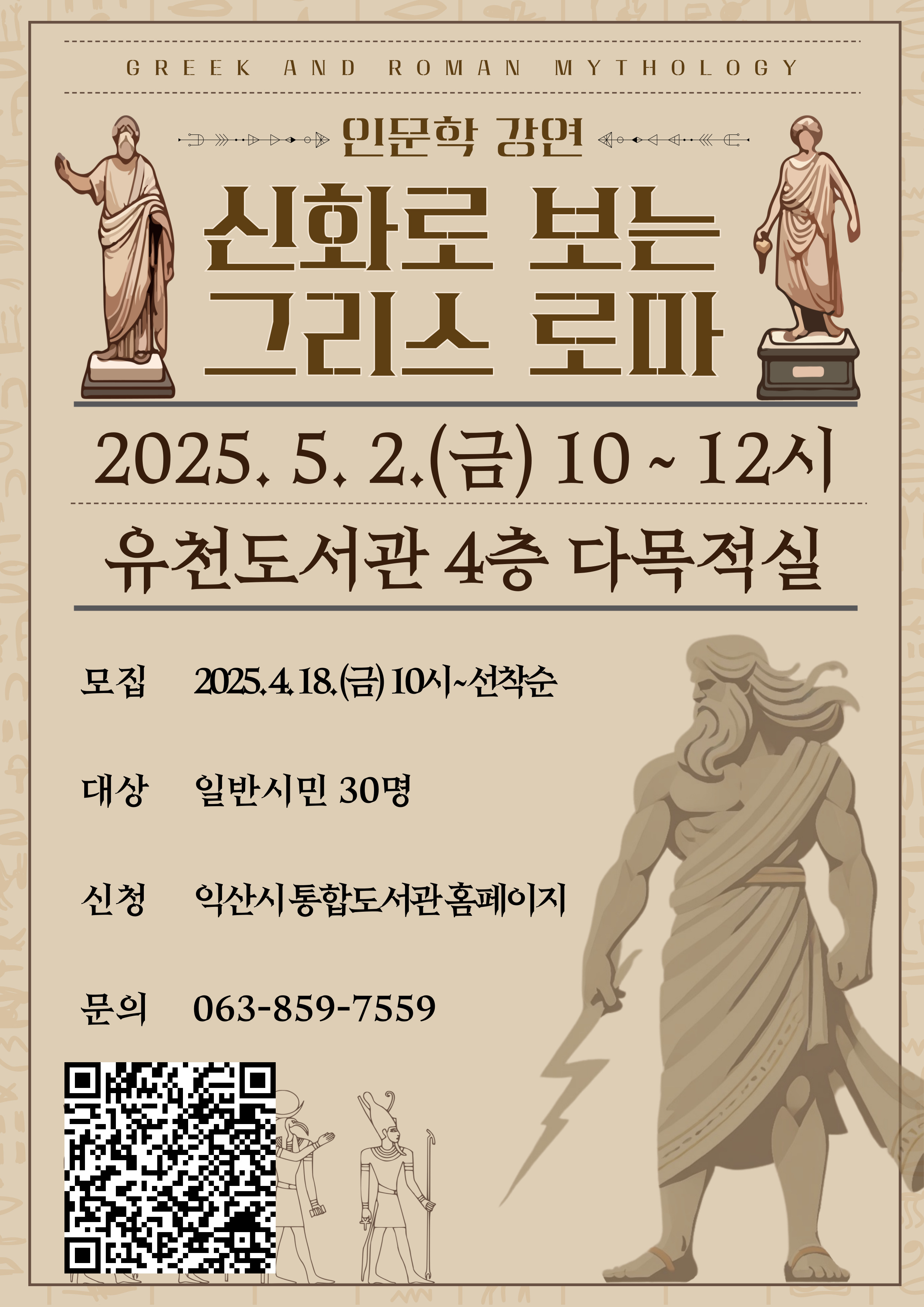 • - 고대 문명과 현대 문화 잇는 신화 이야기…5월 2일 강연- 18일부터 익산시 통합도서관 누리집 통해 선착순 신청