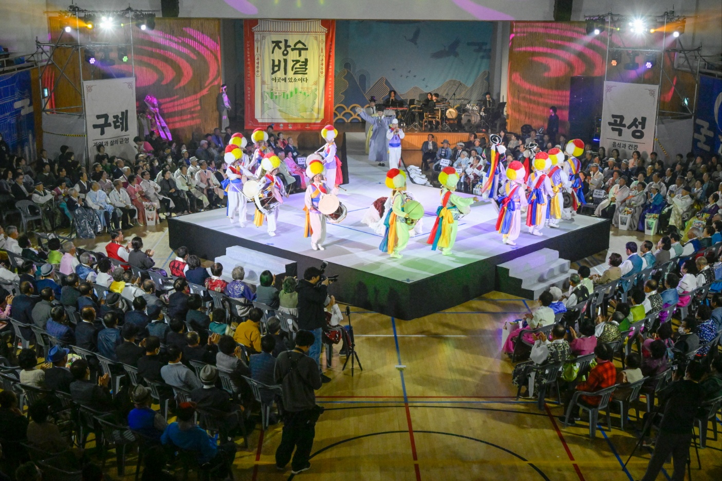 오전 10시, 장애인체육관에서 열린 100세 잔치는 장수 어르신들의 위대한 삶을 기리는 창작마당극과 전통 퍼레이드, 한복 체험, 꽃잔디 나들이 등으로 따스한 감동을 자아냈다.