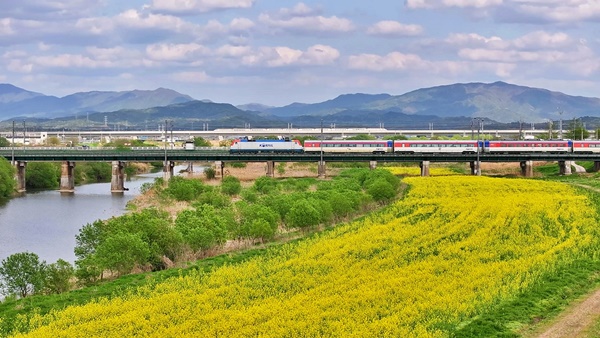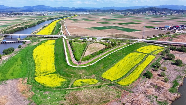 유채꽃 사이로 흐르는 동진강 위 철교를 달리는 기차와 노란 꽃밭이 어우러진 풍경은 감탄을 자아낸다. 생생한 자연의 색채와 봄기운 가득한 풍경은 많은 이들의 카메라 셔터를 누르게 하고 있다. 유채꽃밭 인근에는 파크골프장, 쉼터, 산책로 등이 잘 갖춰져 있어 여유로운 봄날을 보내기에도 안성맞춤이다.
