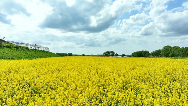 신태인 만석보에서 파크골프장까지 약 2km 구간에 걸쳐 이어진 유채꽃은 봄기운을 머금고 노란 꽃잎을 활짝 펼치며 동진강변을 황금빛으로 물들이고 있다. 시원하게 흐르는 강줄기와 나란히 자리 잡은 유채꽃밭은 산책로와 어우러져 그림 같은 풍경을 자아낸다.
