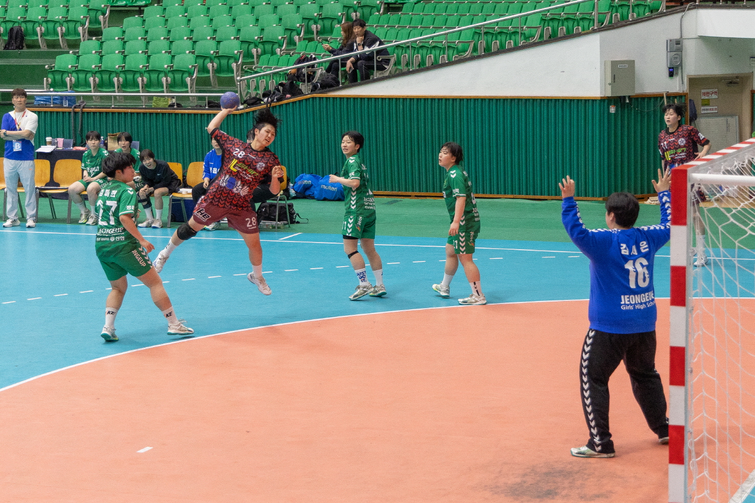 [익산=뉴전북] 익산에서 전국 학생 핸드볼 선수들의 뜨거운 승부가 펼쳐지고 있다.