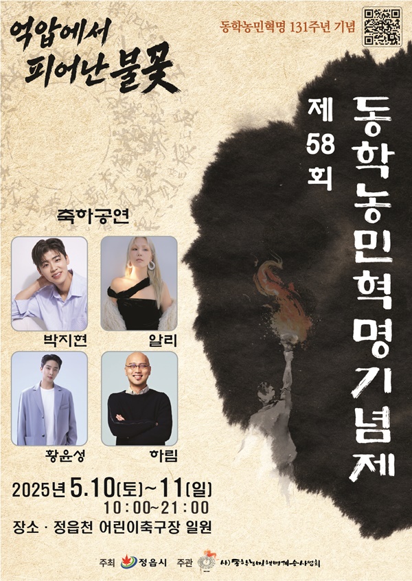 ‘동학농민혁명, 억압에서 피어난 불꽃’이라는 슬로건 아래 펼쳐지는 이번 행사는 동학농민혁명의 역사와 정신을 기리기 위한 시민 참여형 축제로 기획됐다. 백미는 단연 ‘1894 진군행렬’이다. 동학농민군이 정읍을 넘어 전국으로 향하던 발자취를 상징적으로 재현하는 이 행렬에는 참가자 전원이 농민군 복장을 하고 정읍 시내를 함께 행진하며 그날의 기개를 생생하게 전달할 것으로 보인다.