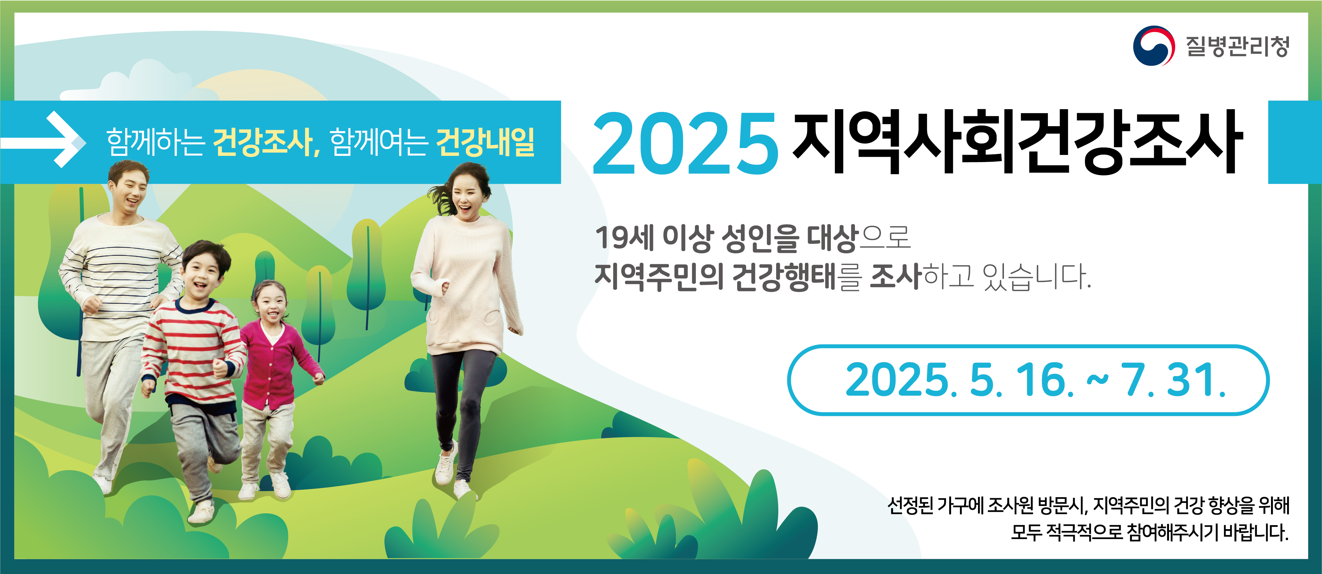 익산시는 5월 16일부터 7월 31일까지 질병관리청, 원광대학교 의과대학과 함께 '2025년 지역사회건강조사'를 공동 수행한다고 14일 밝혔다.