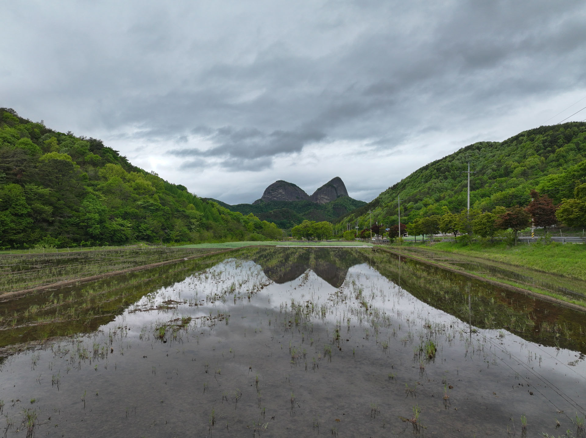 [진안=뉴전북]5월의 진안 마이산이 녹음이 짙어진 가운데 조화로운 풍경으로 계절의 정수를 담아내고 있다. 벼농사를 준비하는 논물위로 자연이 빚어낸 풍경이 보는 이의 마음까지 맑게 씻어주고 있다.