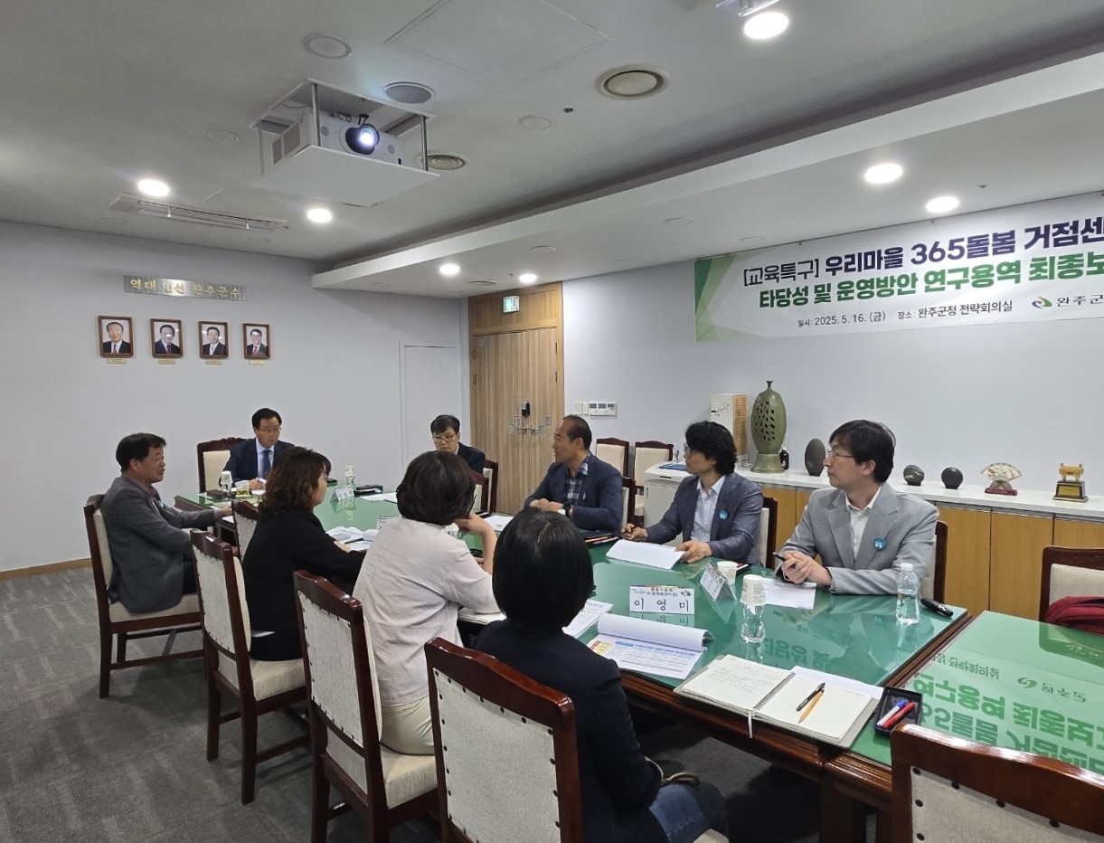 19일 완주군은 최근 군청 전략회의실에서 ‘우리마을 365돌봄 거점센터 조성 타당성 및 운영방안 연구용역’ 최종보고회를 개최했다.
