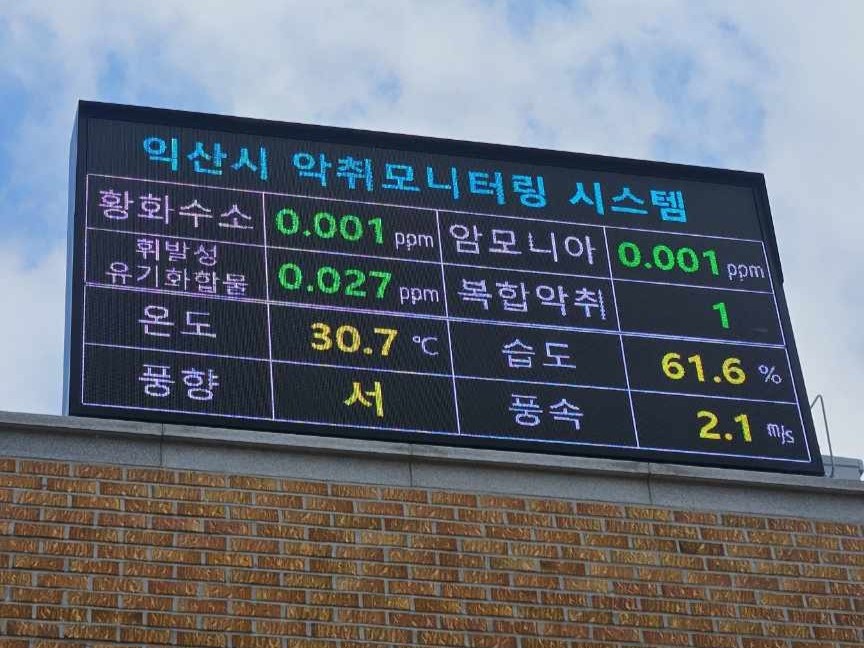 아울러 하수도과는 평화동에 위치한 하수관로 제3중계펌프장의 악취 상황을 한눈에 볼 수 있도록 측정장치 옆에 전광판을 설치했다. 전광판은 '익산악취 24'로 전송되는 악취 측정값과 기상 상황을 표출해 시민들의 이해와 신뢰를 높이는 역할을 할 것으로 기대된다.