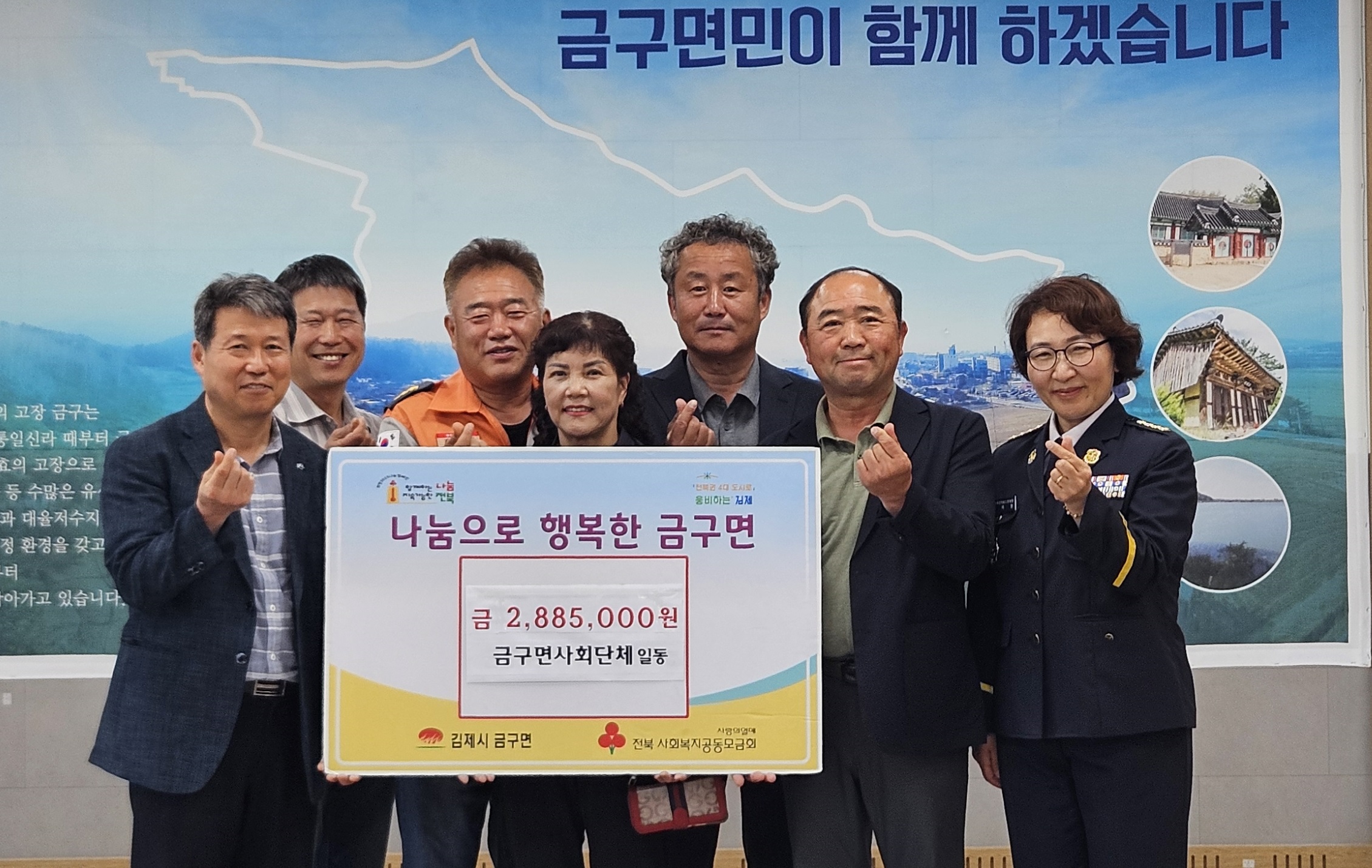 성금을 받은 대상자는 “금구면 이웃들의 진심어린 위로와 성원에 감사드린다”며 “이 성금이 일상으로 돌아가는 데에 많은 도움이 될 것”이라고 감사를 전했다.