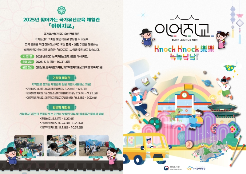[군산=뉴전북] 국가유산청과 국가유산진흥원이 추진하는 교육·체험 프로그램 ‘이어지교’에서는 군산시 소재의 초·중등학교 및 복지기관을 대상으로 참가 기관을 모집한다고 27일 밝혔다.