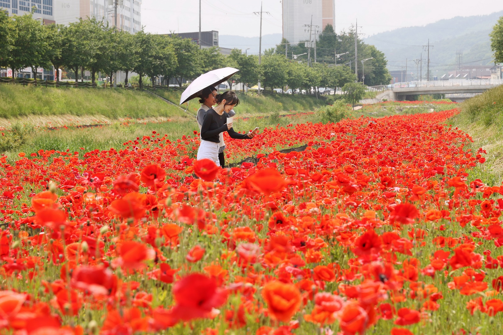 개화 시기가 다소 늦었던 작년과 다르게 올해는 좀 더 빨리 꽃양귀비가 만개해 천변을 따라 화려한 자태를 뽐내고 있다.