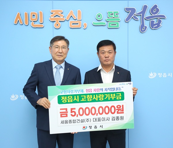 | ㈜세움종합건설 김종원 대표, 정읍시에 고향사랑기부금 500만원 기탁 |