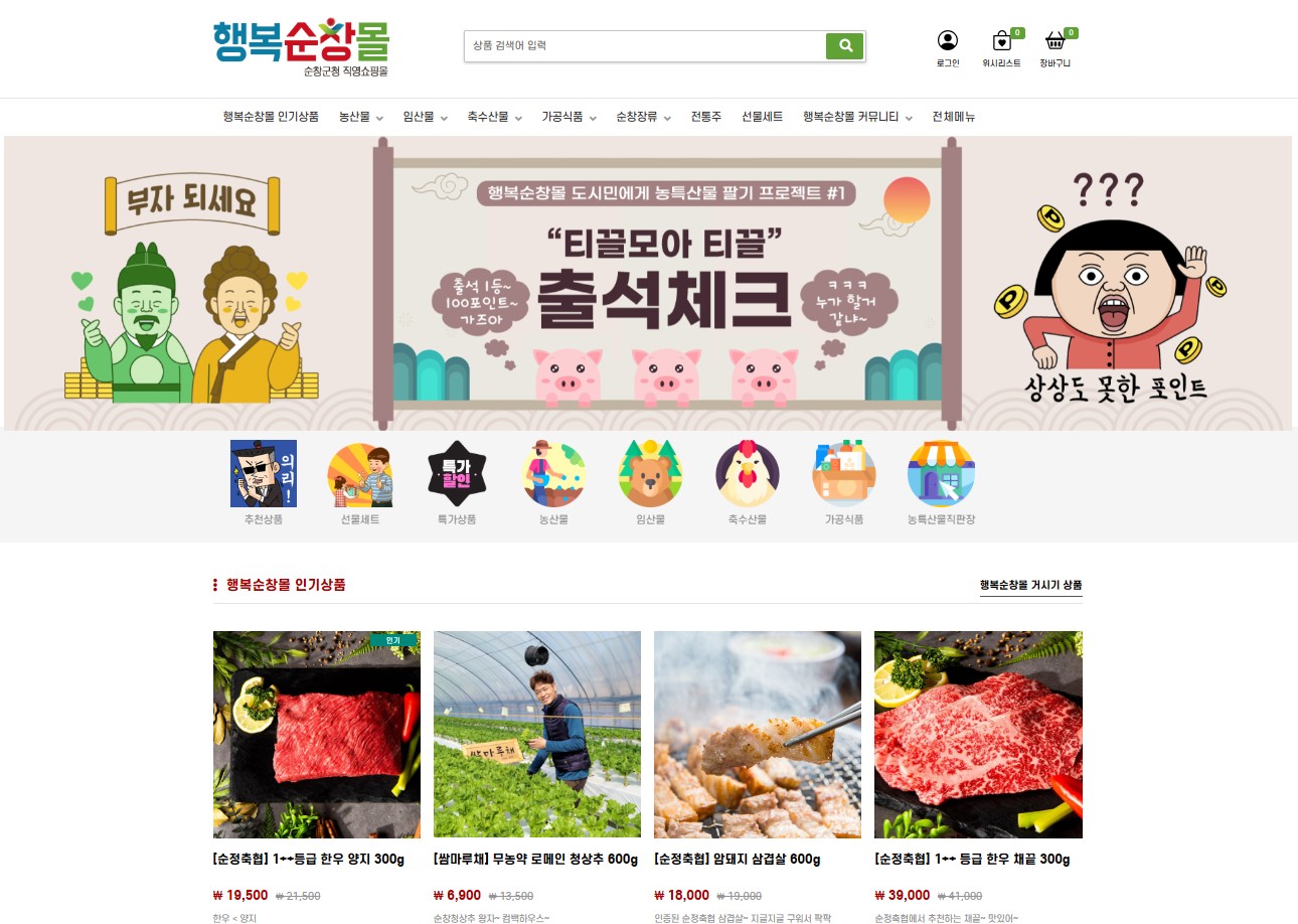 행복순창몰은 변화하는 온라인 소비 트렌드에 발맞추어 2023년 7월에 문을 연 직영 농특산물 쇼핑몰로, 합리적인 가격과 높은 품질로 입소문을 타며 꾸준히 회원 수를 늘려가고 있다.
