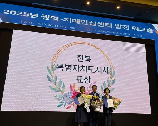 시는 11일 전주 그랜스힐스턴호텔에서 열린 ‘2025년 광역-치매안심센터 발전 워크숍’에서 2024년 치매관리사업 우수사례 기관으로 선정돼 전북특별자치도로부터 표창장을 받았다.