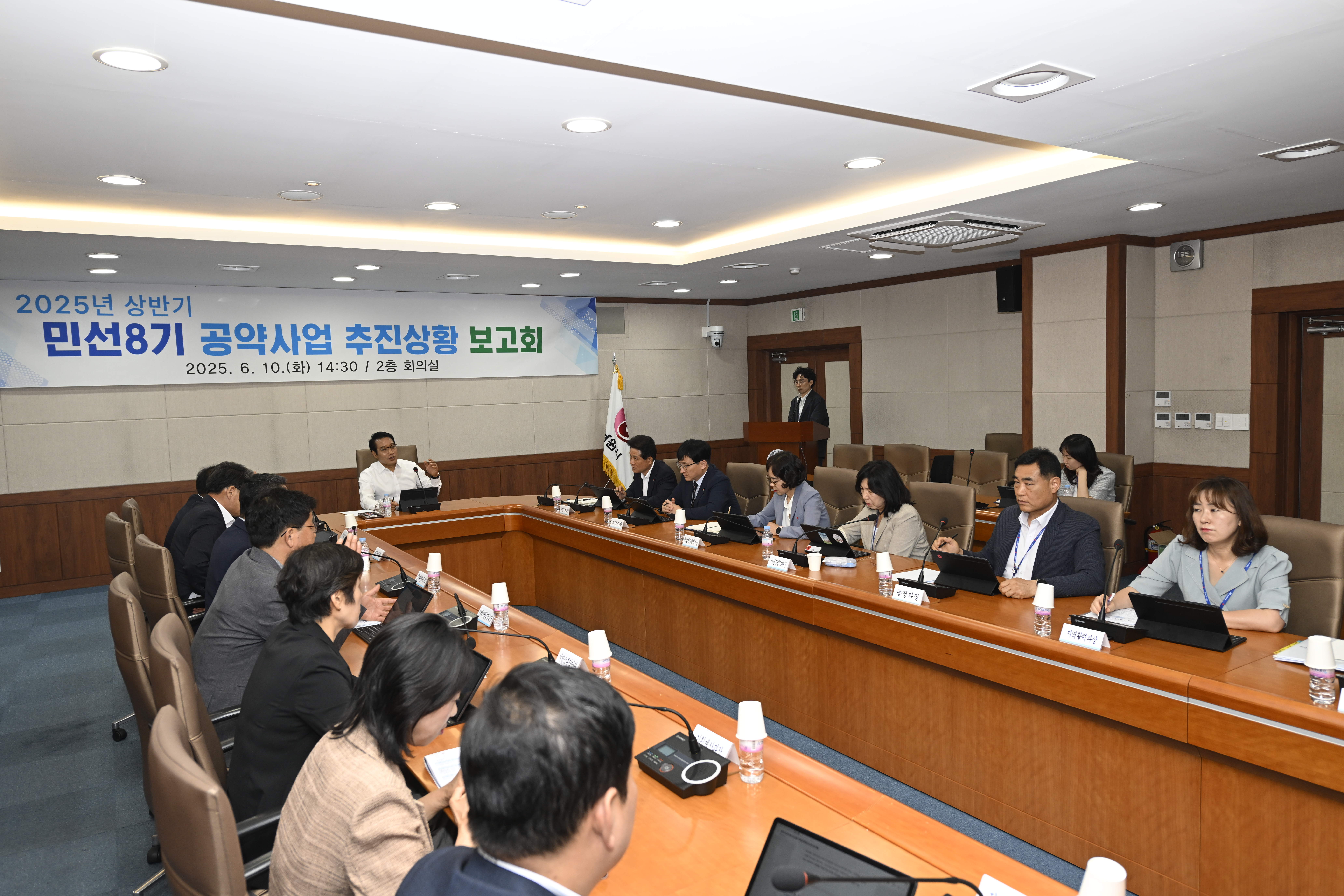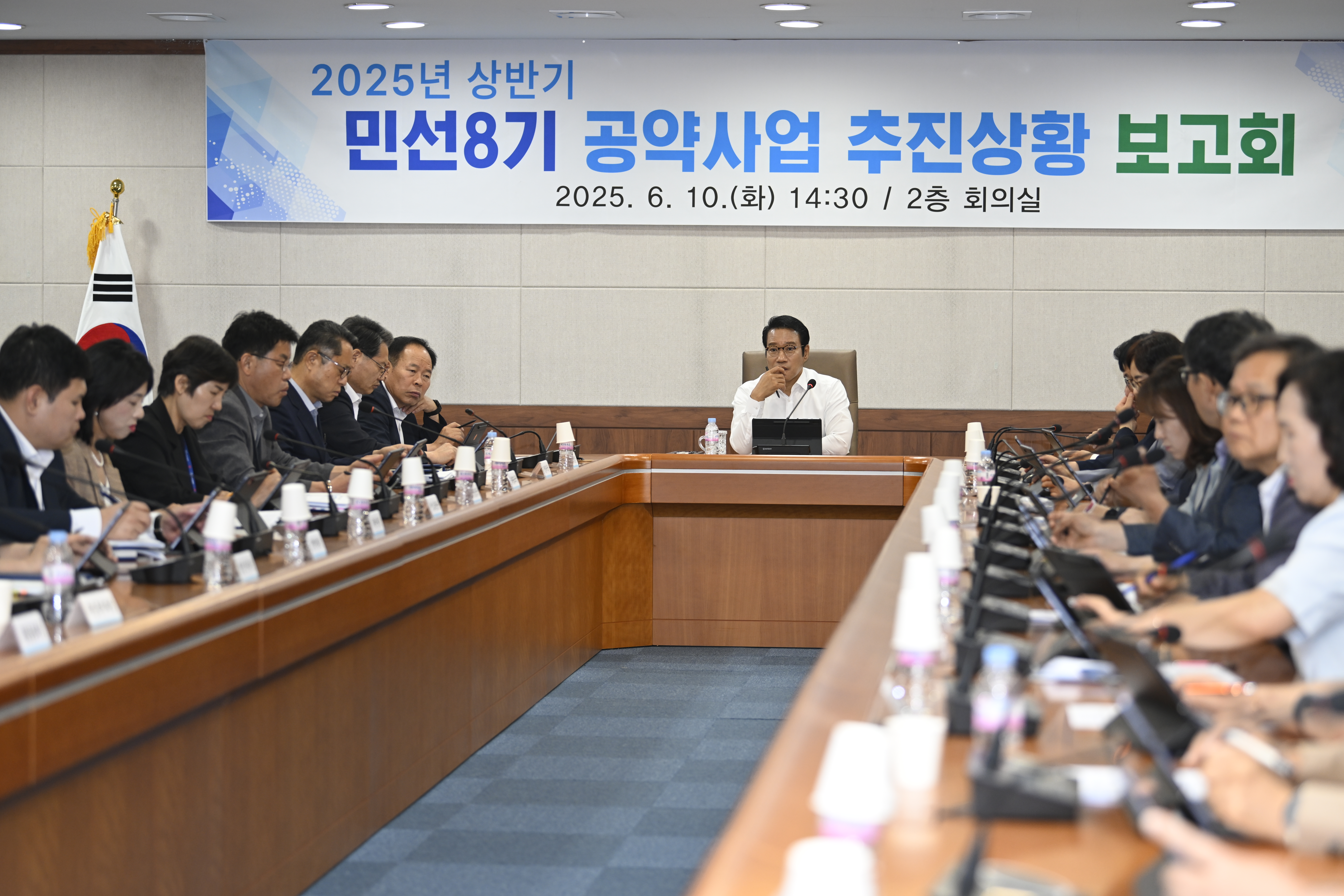 이번 보고회는 민선84년차를 앞두고 실국소장, 공약사업 부서장이 참석한 가운데 현재까지의 공약사업 추진상황을 점검하고 향후 추진방향을 논의하기 위해 마련됐다.