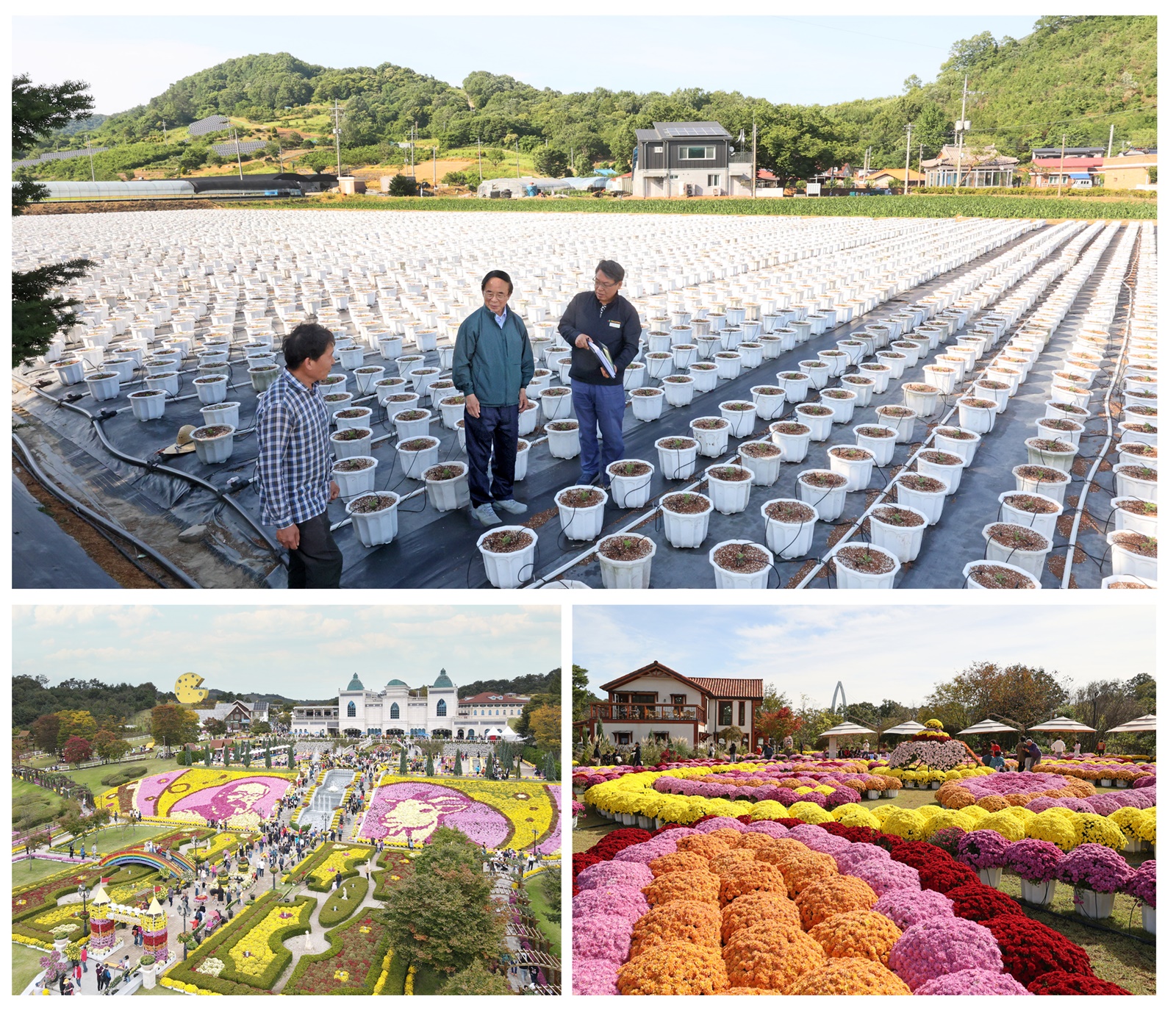 올해 생산되는 국화는 노랑, 핑크, 빨강, 주황 등 7 색상 7 품종으로 총 85,100주를 사각 화분 20,700개와 원형 화분 23,000개 총 43,700개의 화분에 식재했다.
