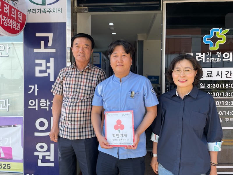 착한가게에 동참한 김창완 고려가정의학과 원장은 “주민들의 건강을 바라는 마음처럼 어려운 이웃들에게도 마음을 나누고 싶었다”며 “우리의 작은 나눔이 누군가를 버티게 하는 힘이 된다면 그걸로 충분히 기쁘다”고 말했다
