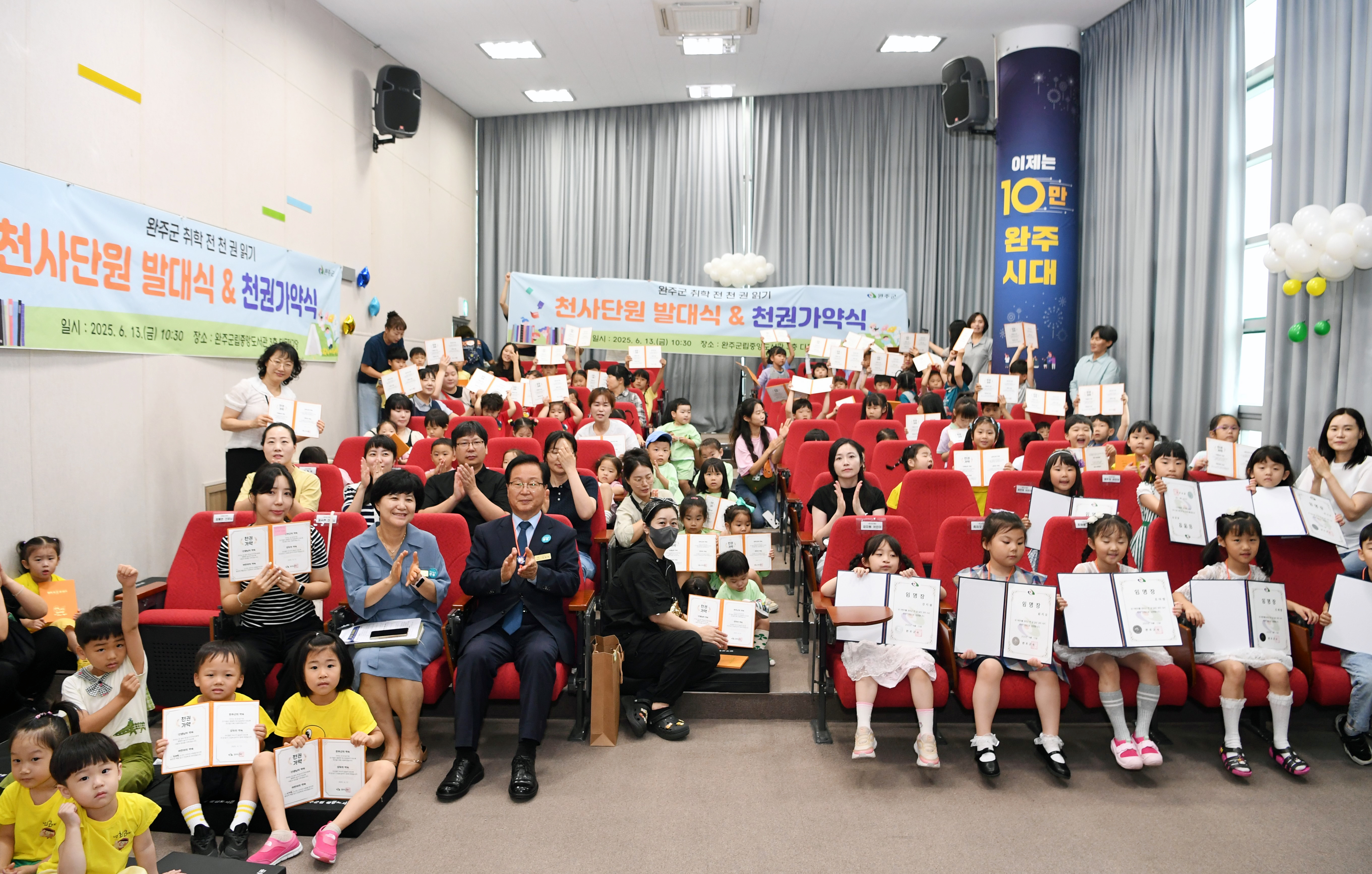 유희태 완주군수는 “오늘 천사 단원으로 첫걸음을 뗀 어린이들이 책을 통해 더 넓은 세상과 만나고, 그 가치를 친구들과 함께 나누는 모습이 무척 자랑스럽다”며 “완주군은 앞으로도 아이들이 도서관과 함께 건강하게 성장할 수 있도록 아낌없이 지원하겠다”고 밝혔다.
