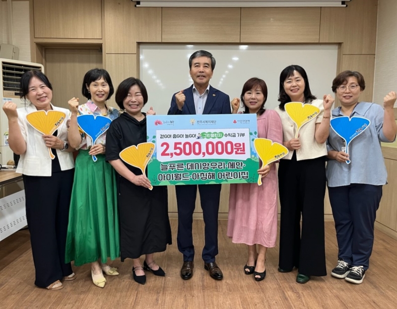 늘푸른어린이집(원장 고유정)과 데시앙우리어린이집(원장 전혜경), 세안어린이집(원장 이영), 아이월드어린이집(원장 이미자), 아침해어린이집(원장 정미경) 은 16일 전주시복지재단(이사장 윤방섭)에 기부금 250만 원을 전달했다.