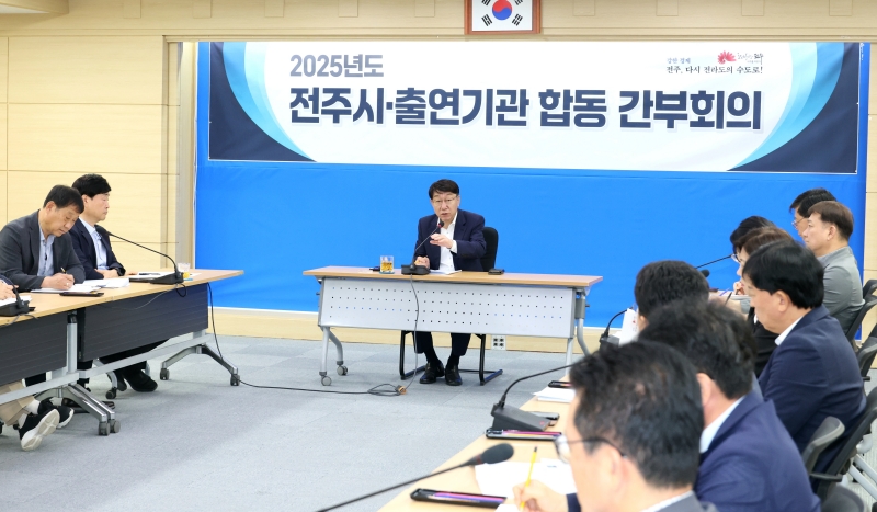 시는 16일 시청 4층 회의실에서 우범기 전주시장 주재하에 완산·덕진구청장과 국·소장, 시 산하 출연기관장이 참석한 가운데 ‘시 출연기관 합동 간부회의’를 개최했다.