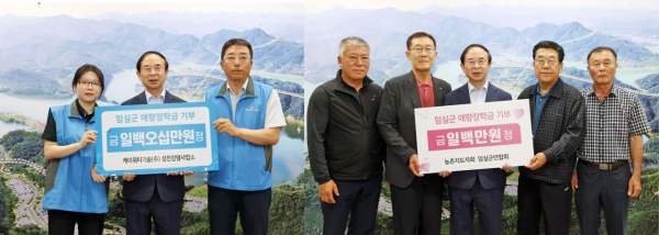 이날 기탁식에서는 임실군 애향장학회에 지역인재 육성을 위한 장학금으로 케이워터기술(주)섬진강댐사업소(소장 정해도)가 150만 원, 농촌지도자회 임실군연합회(회장 김성권)가 100만 원을 기탁했다.