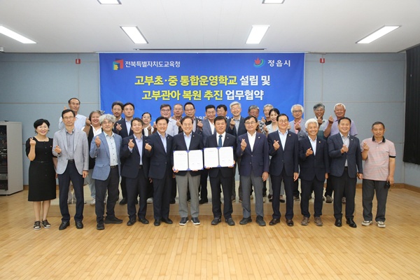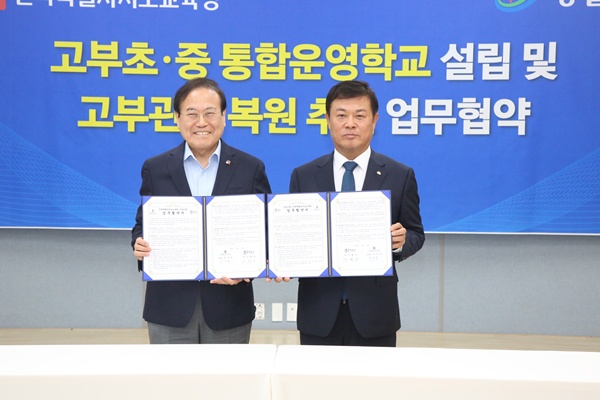 고부관아는 1894년 동학농민혁명의 서막이 열린 역사적 현장이다. 그러나 현재 이 관아 터는 고부초등학교 부지와 겹쳐 있어 복원을 위해서는 학교 이전이 불가피했다. 양 기관은 이에 따라 고부초를 고부중 부지로 이전하고 초·중학교 통합운영학교를 신설하기로 합의했다. 이번 결정으로 역사 문화자원의 보존과 활용, 교육의 질적 향상이라는 두 가지 가치를 함께 이루는 계기가 될 전망이다.