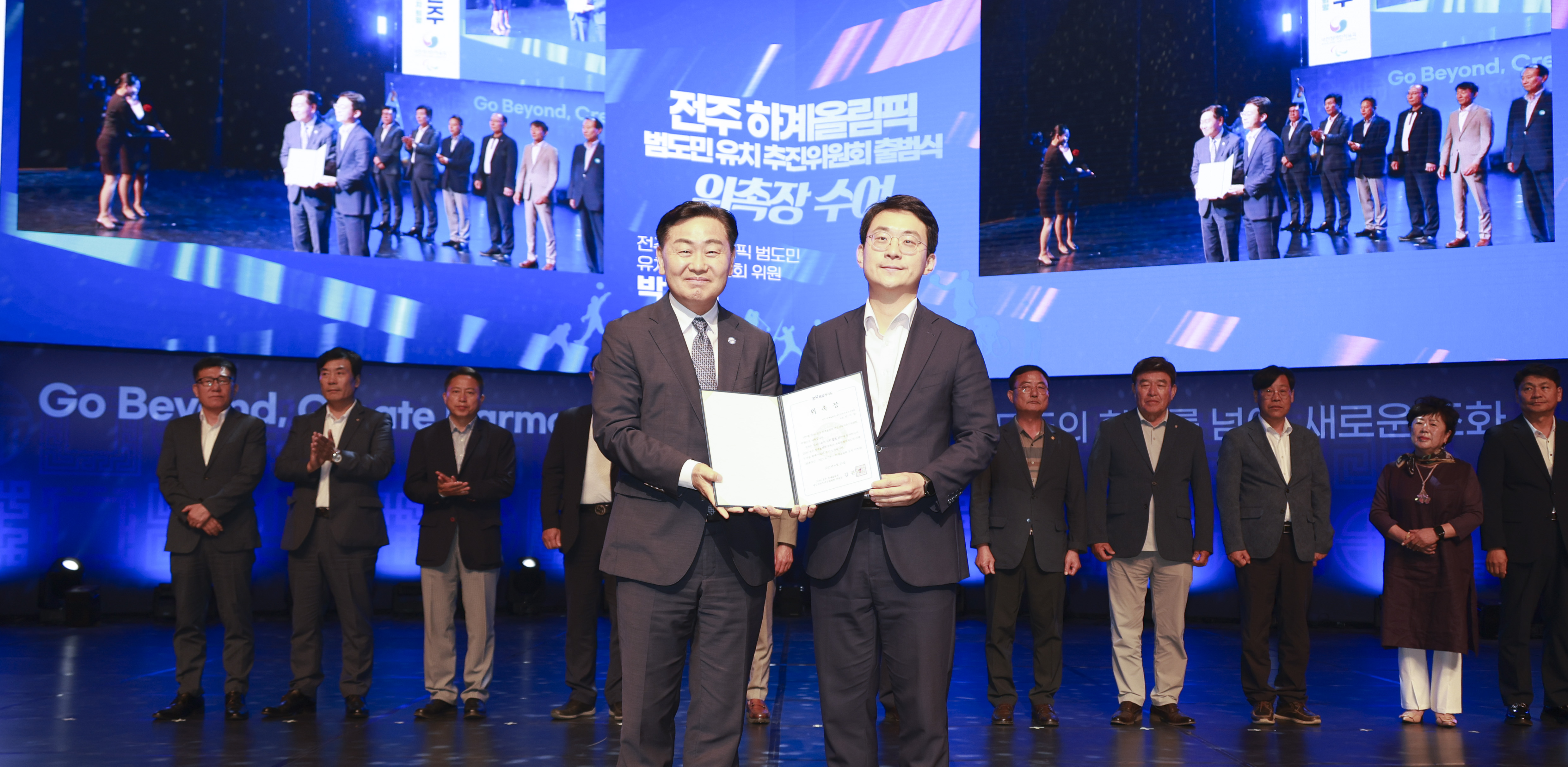 이날 출범식에서는 전북 14개 시군 대표에게 위촉장이 전달돼 도 전역의 참여 기반이 제도적으로 구축됐다. 이어 김동주(철인3종), 한다경(수영), 정솔민(배구), 이찬영(야구) 선수 등 도내 체육인을 대표한 청소년들이 무대에 올라 유치 선언문을 낭독했다. 전주기접놀이 깃발 5기가 등장하는 상징 퍼포먼스를 통해 전북의 의지를 드러냈다.