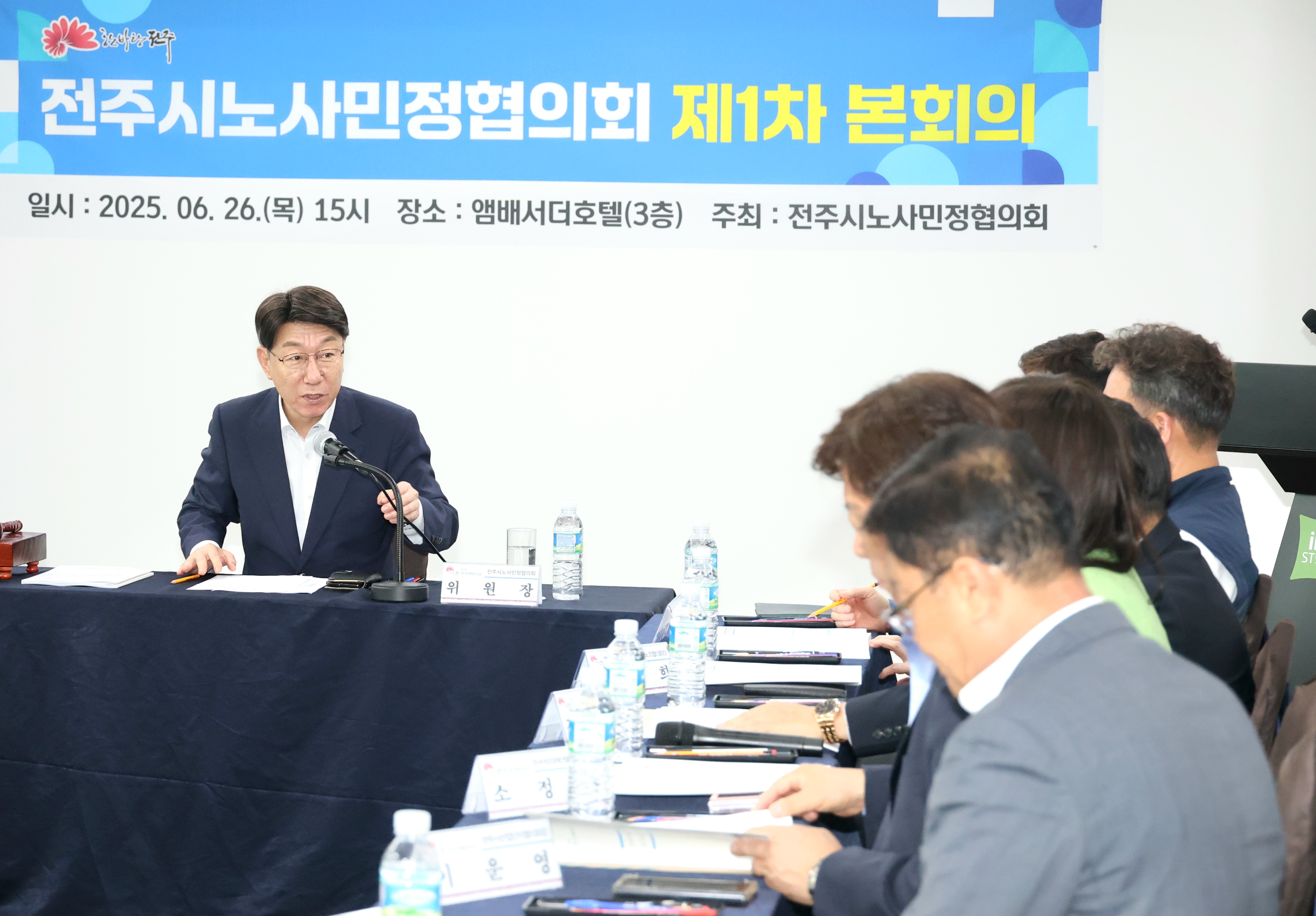 전주시노사민정협의회는 26일 앰배서더 3층에서 ‘2025년 상반기 전주시 노사민정협의회 본회의’를 열고, 노동 존중 도시 실현과 지역산업단지 노동자 복지 향상을 위한 안건을 심의했다.