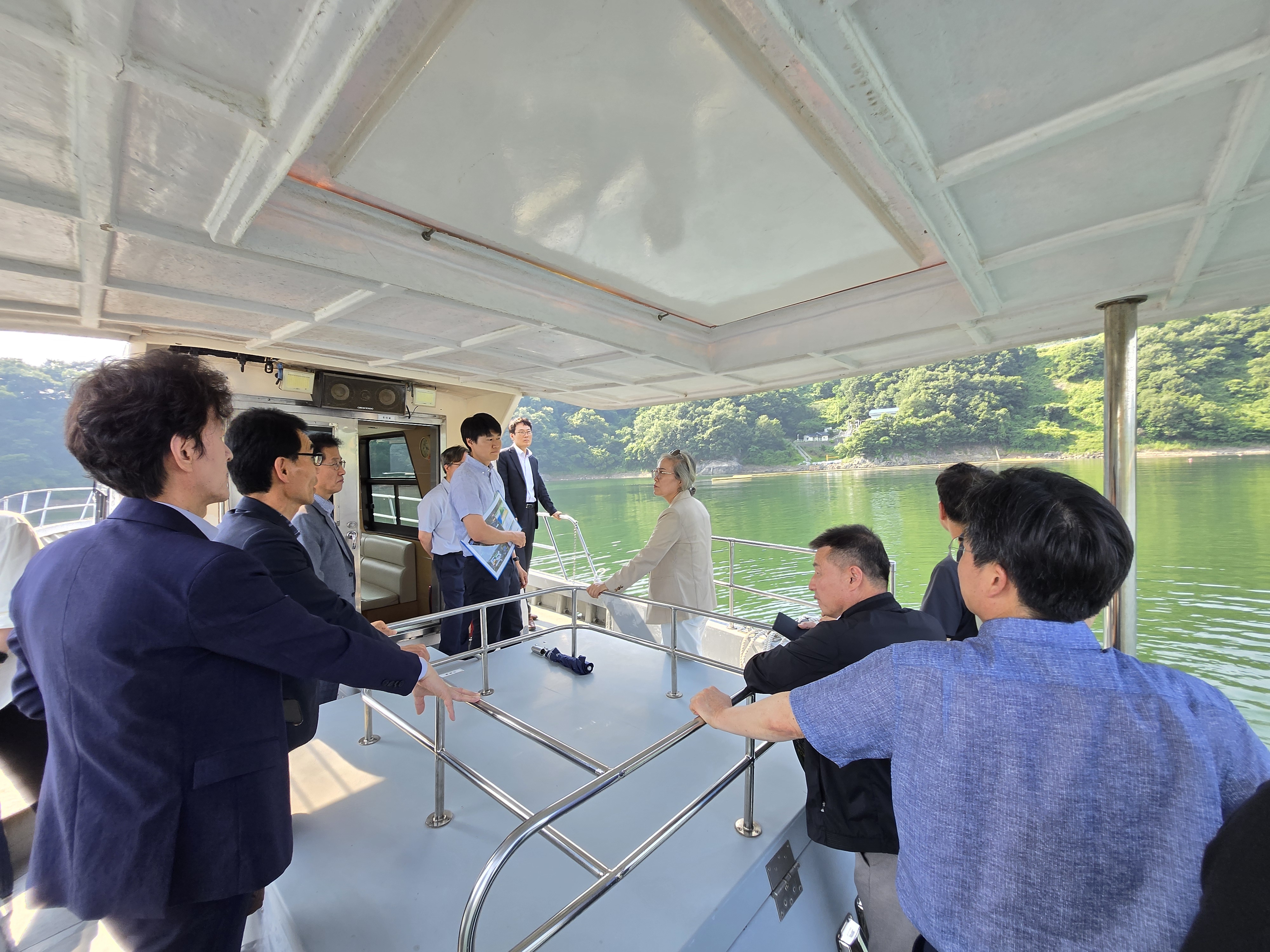 회의 종료 후에는 송금현 전북자치도 환경산림국장을 비롯한 위원들이 직접 배를 타고 옥정호 주요 취수지점과 조류차단막, 수면포기기 등 수질개선 설비를 현장 점검했다. 이 과정에서 위원들은 시설 운영 현황을 살펴보며 실효적 대응의 중요성을 다시 확인했다.