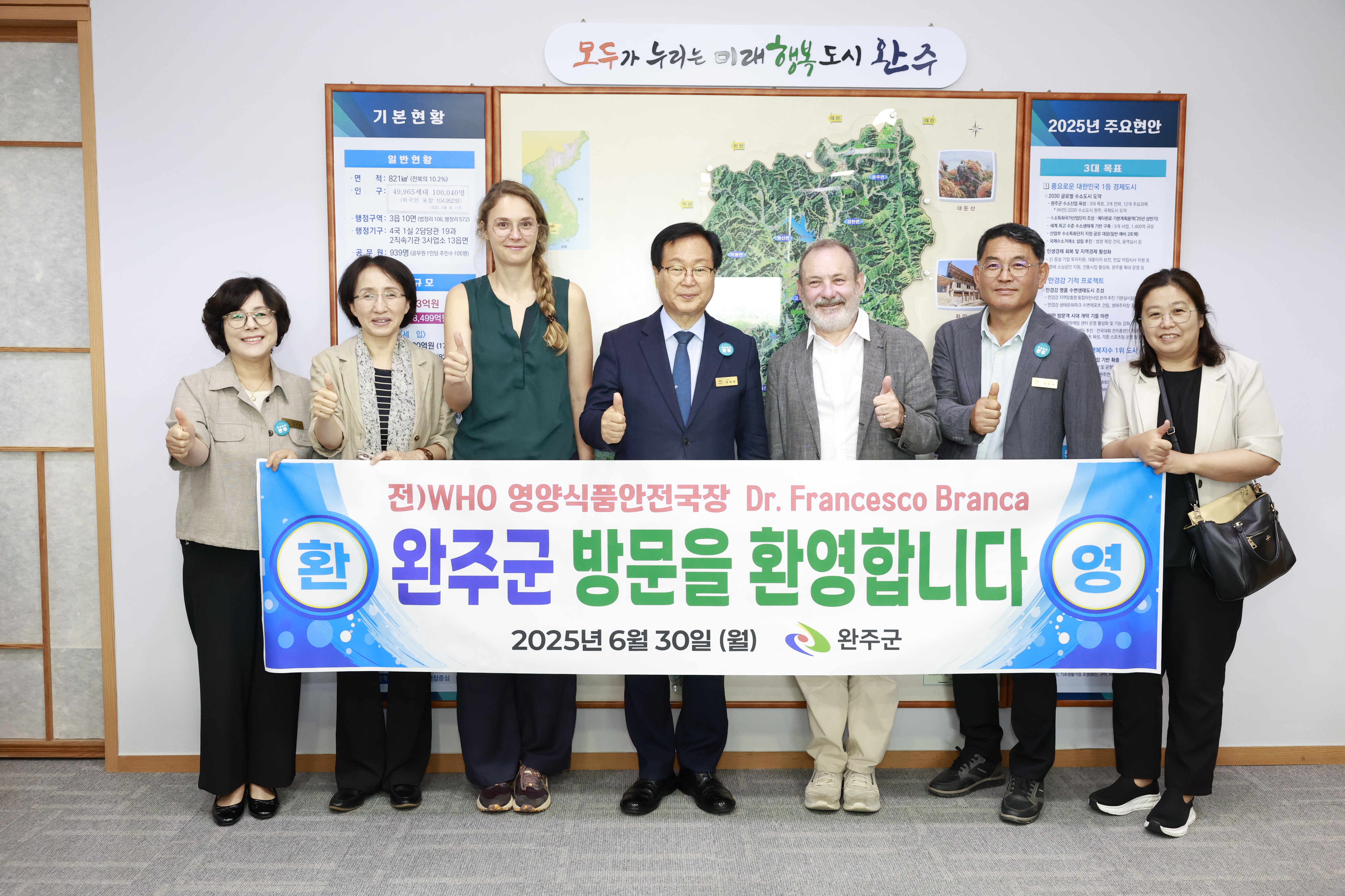 완주군에 따르면 지난 30일, 세계보건기구(WHO)와 보건‧영양 전문가들이 지역 로컬푸드 정책과 기반시설을 둘러보기 위해 군을 방문했다.