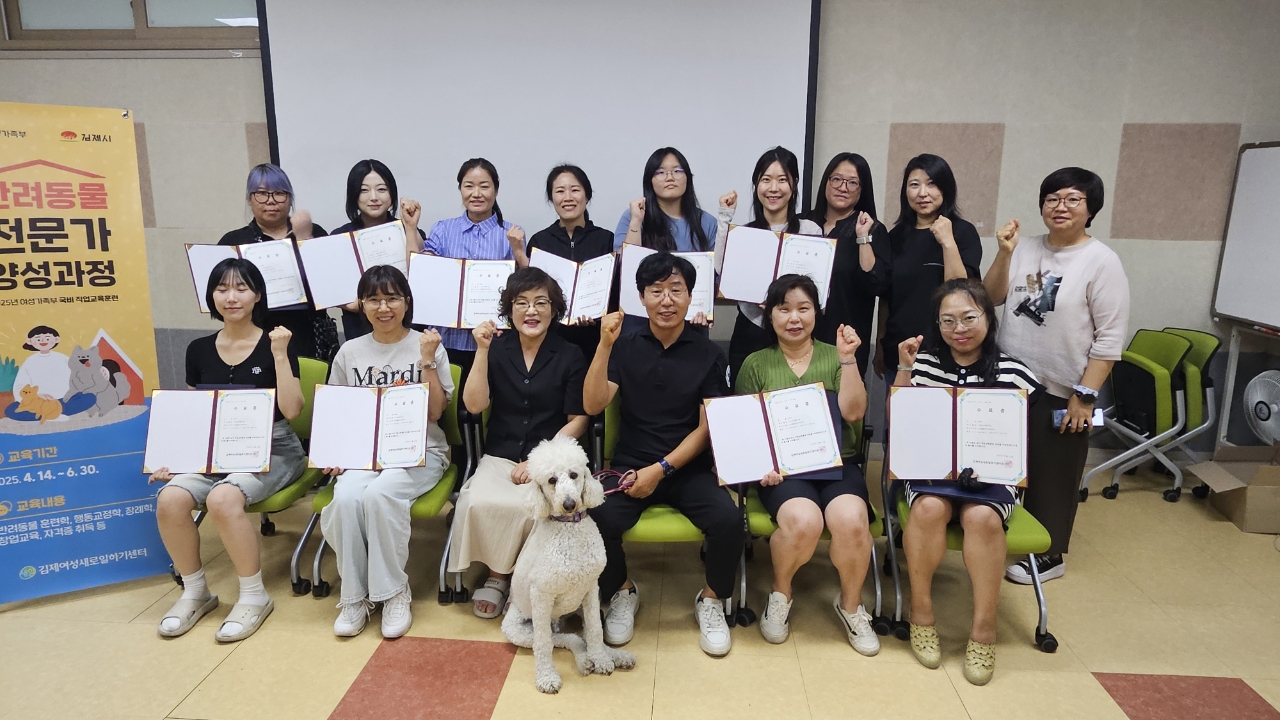 김제여성새일센터팀장은 “이번 반려동물전문가 직업교육훈련 200시간의 긴 교육과정 동안 교육생들의 열정과 수업 태도가 매우 진심이었으며 모두 반려동물 행동교정사 자격증 취득과