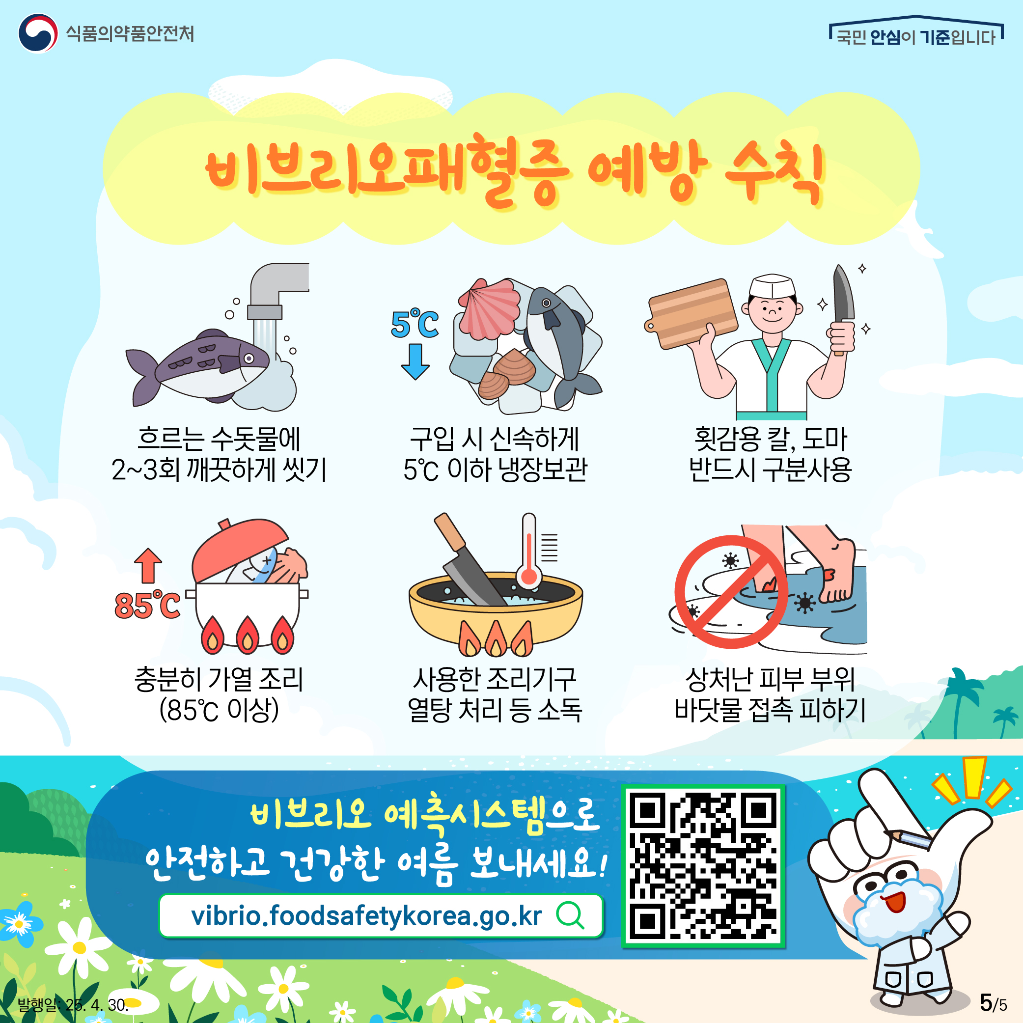 도는 해수 수온이 18℃ 이상으로 상승하면 비브리오패혈증균의 증식 우려가 커지는 만큼, 수산물 영업자와 소비자를 대상으로 예방수칙을 집중 홍보한다. 홍보 내용에는 △흐르는 수돗물에 2~3회 깨끗이 씻기 △사용한 조리기구 소독하기 △횟감용 칼·도마 반드시 분리 사용 등의 안전 수칙이 포함된다.