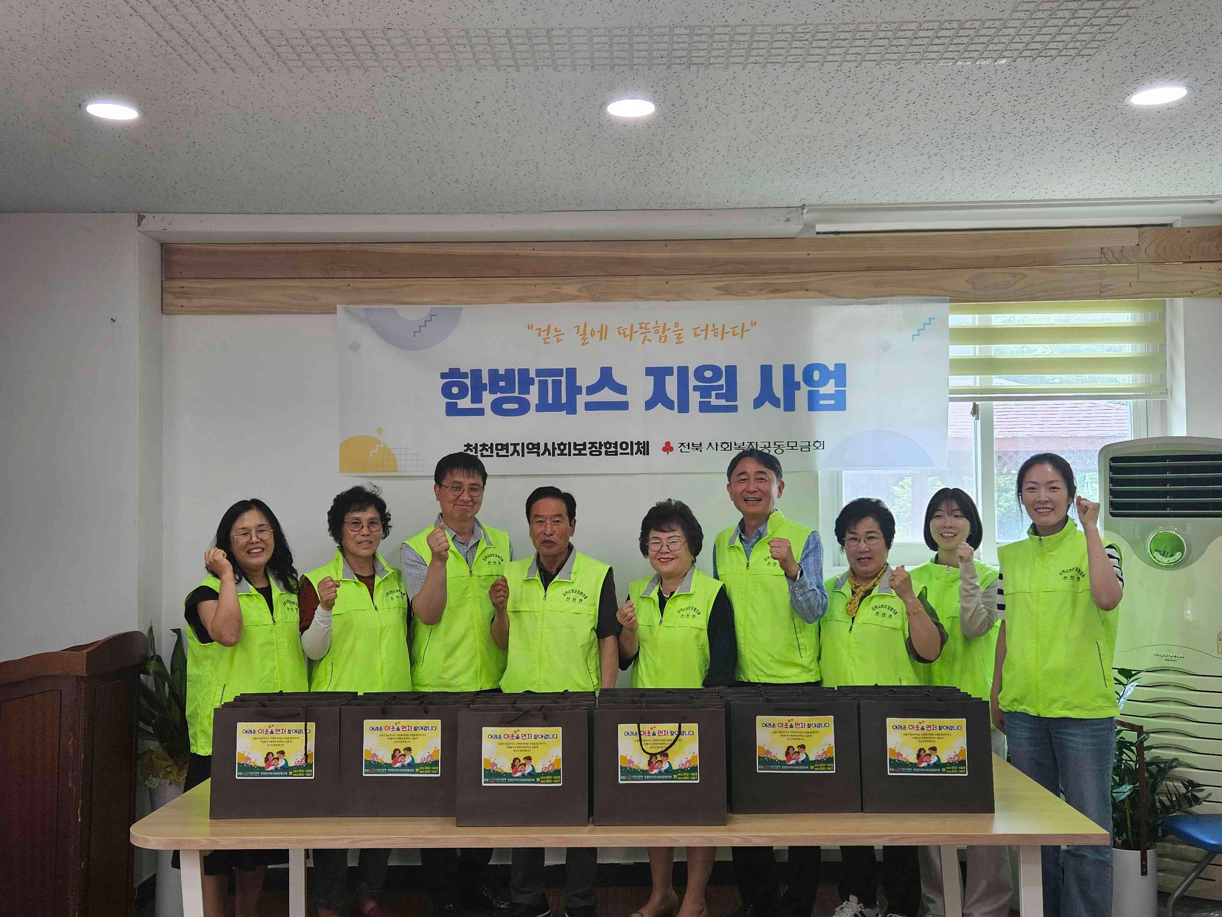 이번 사업은 천천면 지역사회보장협의체 위원들과 찾아가는 복지팀이 협력해 대상자 가정을 직접 방문, 2만 원 상당의 한방파스 세트를 전달하는 방식으로 진행됐다.