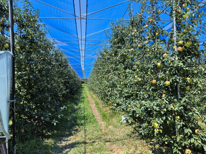 [무주=뉴전북] 무주군이 총사업비 1억 원을 투입해 폭염에 취약한 홍로 품종의 과원 2곳(0.8ha)에 ‘다목적 햇빛 차단망 보급’을 완료했다.