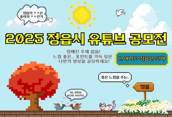 이학수 시장은 “정읍을 바라보는 다양한 시선과 감성을 담은 콘텐츠를 기대하고 있다”며 “이번 공모전을 통해 정읍만의 색다른 매력을 전국에 알릴 수 있기를 바란다”고 전했다.
