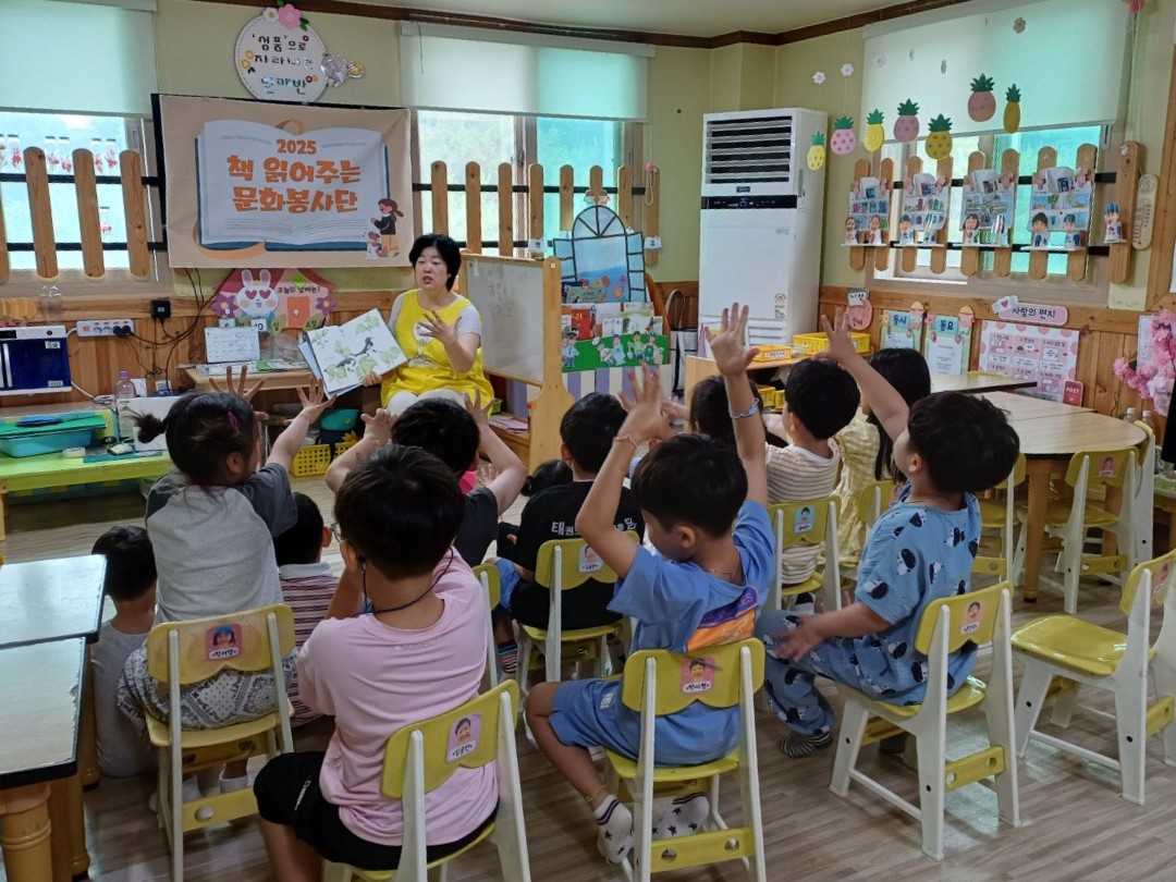 책읽어주는봉사단이 아이들에게 책을 읽어주고 있다