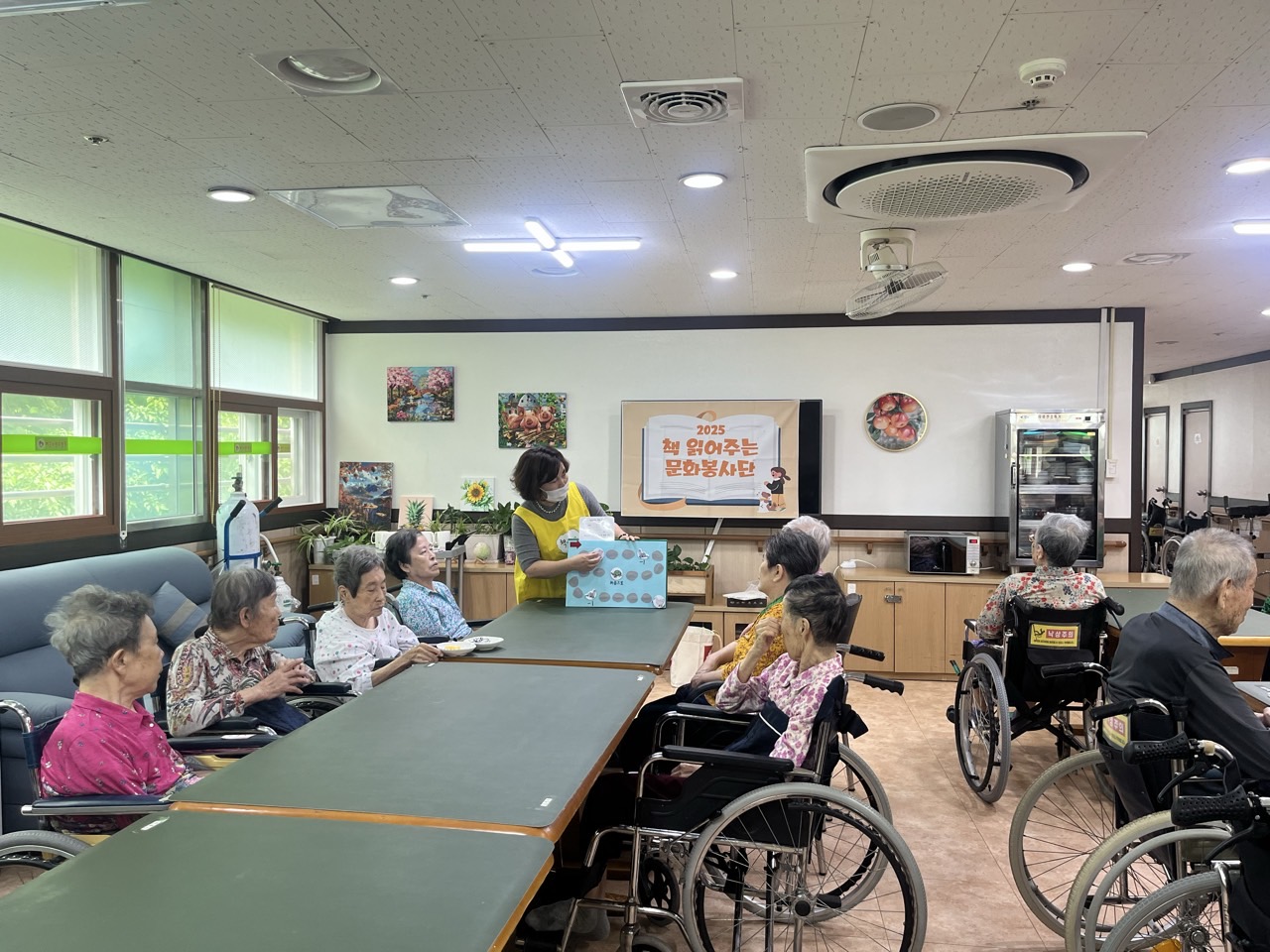 책읽어주는봉사단이 어르신들에게 책을 읽어주고 있다