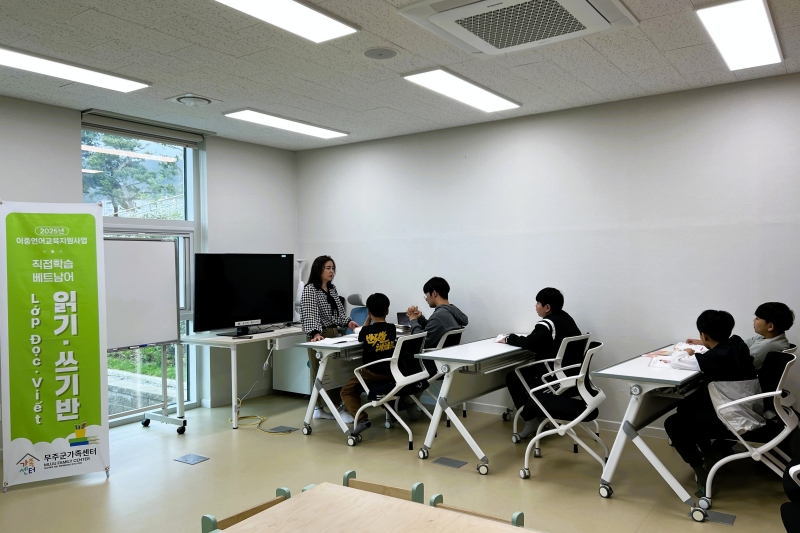 6월 28일에 개강한 ‘베트남어’ 유아반은 무주군 거주 베트남어 사용 미취학 자녀 5명을 대상으로 하며 오는 10월 11일까지 매주 수요일과 토요일 2시간씩 총 27회기로 진행된다. 4월 3일에 시작된 초급반(매주 화, 목요일 총 27회기, 회기당 2시간)은 7월 10일 마무리된다.