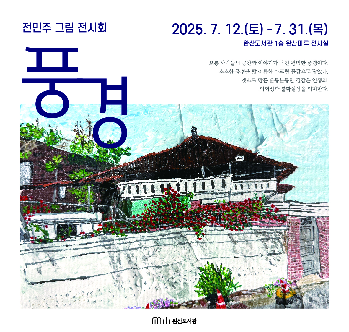 이번 전시에서는 전주시와 전북 지역 곳곳의 풍경을 바라보는 작가의 따뜻한 기억과 감정의 흔적이 담긴 40여 점의 작품이 전시될 예정이다.